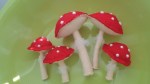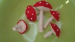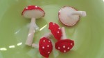 3. Обикновено имам предвид неща за изработване. Тази сутрин намислих да направя гъба. Мухоморчица. Ще видим дали ще стане, както съм я намислила, трябва да пробвам. Може да я ушия от филц, за да има добра форма шапката й – ако я направя от плат, ще стане мека и безформена. Или от сух филц, с иглонабиване. Може да стане за играчка за елха (как да се закача – нагоре или надолу с главата). Мъниста – за зашиване или за залепяне? И т.н.т.н.т.н.
