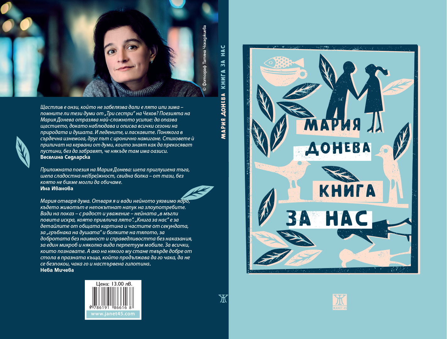 В момента се печата и до ден-два ще излезе „Книга за нас”. Според мен стихотворенията в нея са предимно два вида – много смешни и много тъжни. Когато някой я прочете, ще види кое преобладава според него. За пръв път работя толкова задълбчено и безжалостно, с Марин Бодаков направихме много промени. Този път се съобразих с всички забележки и малко мислих варианти, а повече съкращавах. Реших да сменя и заглавието насред път, но при моите книги съм забелязала, че всичко – и лошо, и хубаво, в крайна сметка е за хубаво. А корицата на Христо Гочев е корица-мечта.