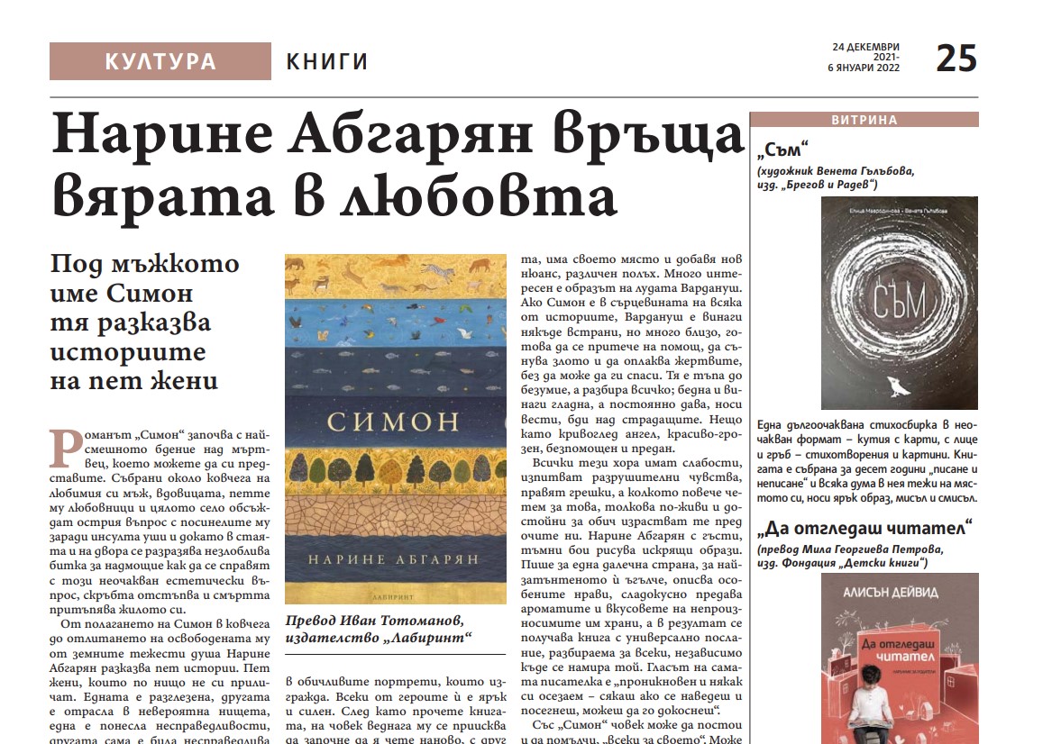 От началото на декември пък пиша страницата за книги на вестник „Сега“.