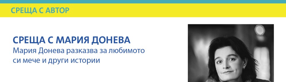 Среща с Мария Донева и нейното любимо мече. Каним ви на среща с вещици, тролове, гиганти, мечета, прасета, калинки, кучета и дракони, и Мария Донева, която превежда техните истории.