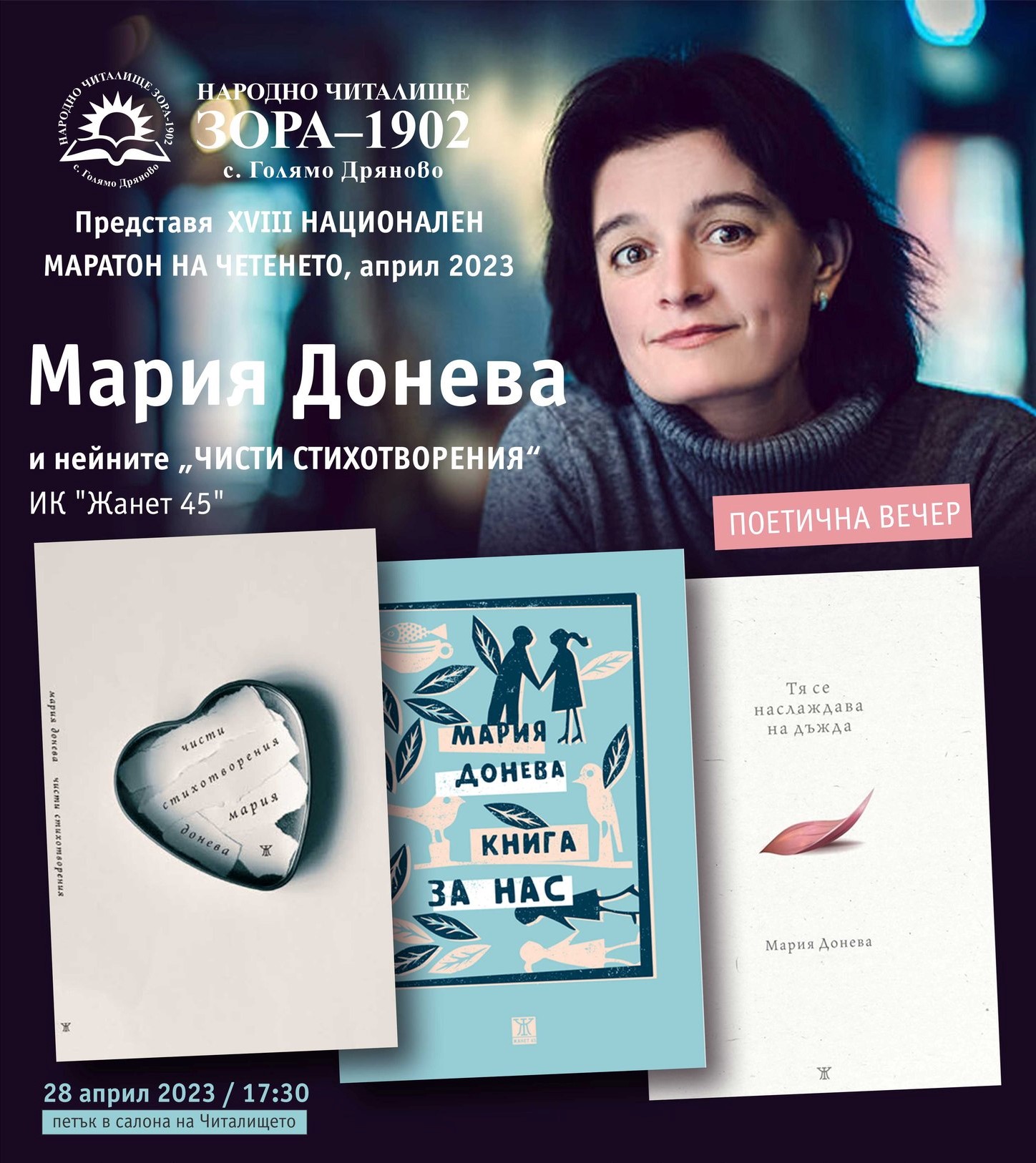 От кога я планираме с Женя Димова, даже не мога да си спомня точно. Но вече й дойде редът: в петък, в Народно читалище „Зора – 1902“.