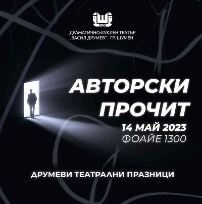 Драматично-кукленият театър „Васил Друмев“ ще представи 10 селектирани пиеси от конкурса „Авторски прочит“ в рамките на фестивала „Друмеви театрални празници“. Ежегодното четене на откъси от селектираните текстове ще се проведе на 14 май от 12:00 ч. във Фоайе 1300.