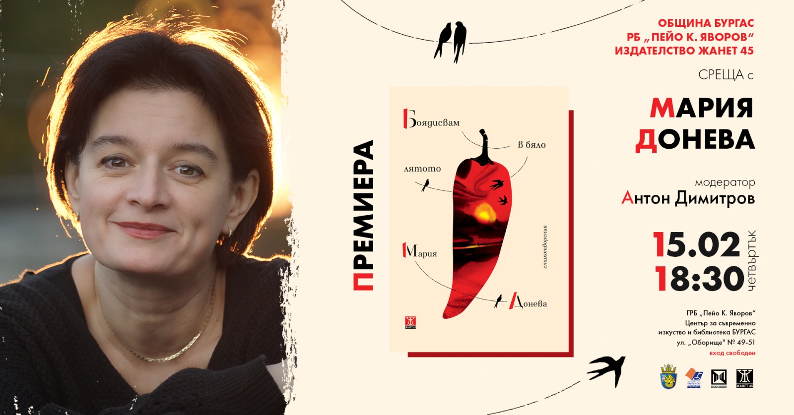 издателство Жанет 45 Ви канят на среща с Мария Донева, която за първи път гостува в красивата и уютна бургаска библиотека – Регионална библиотека „Пейо Яворов“.