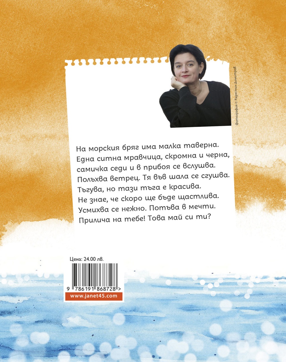Имам нова книга. На 19 февруари ще излезе от печат любовната поема „Писмото на мравката“ с нечувано красиви илюстрации от Елена Панайотова, със знака на ИК „Жанет 45“ и с нещо важно за казване на хората, които искат да се влюбят и на хората, които вече са се срещнали и ще се обичат цял живот.