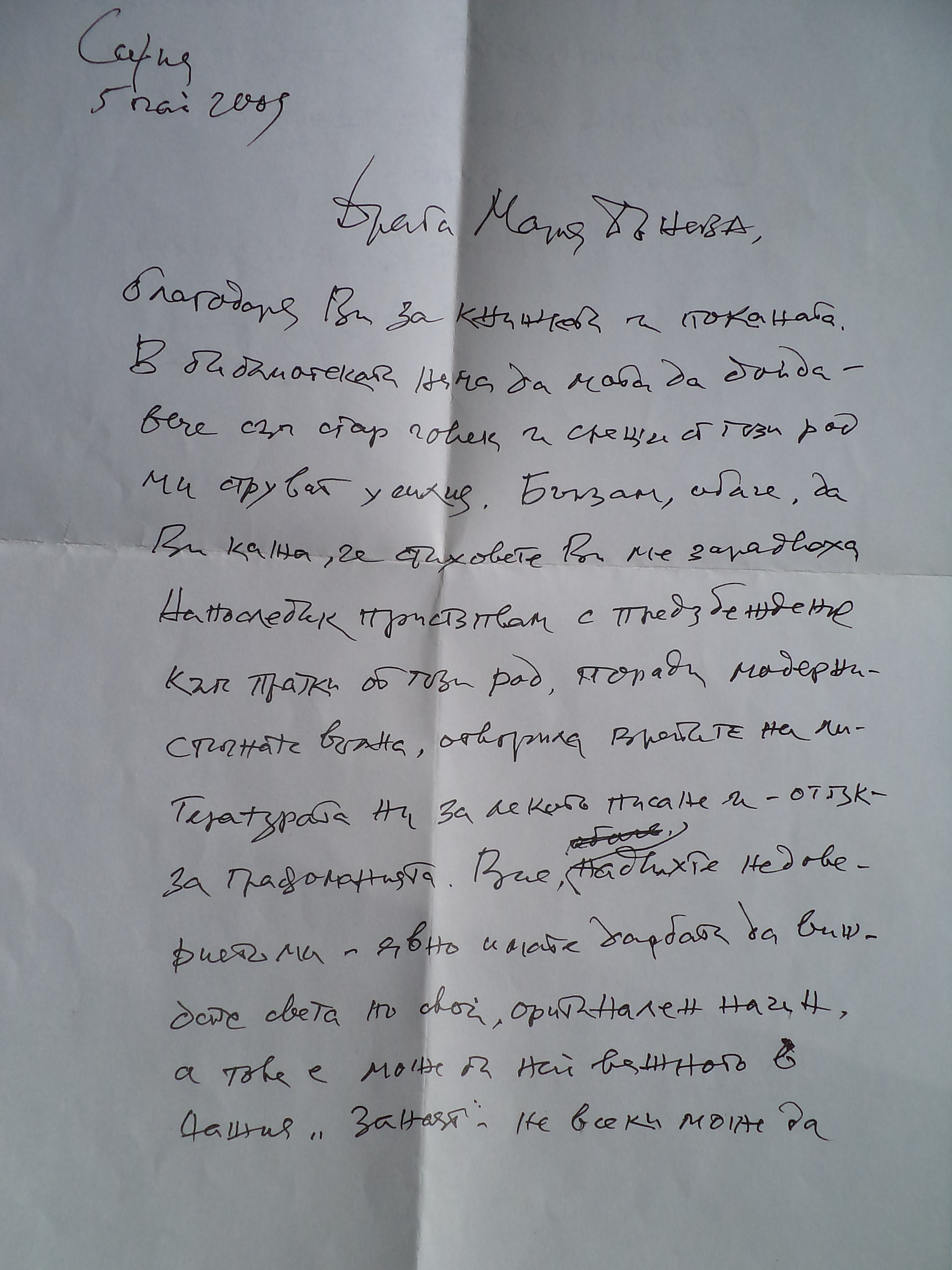 Едно от най-големите предимства, които имам, говорейки за стиховете на Мария Донева, е, че ние не се познаваме лично. Без пристрастия, без натрупвания, без спомени. Само текст.