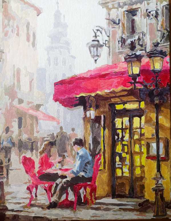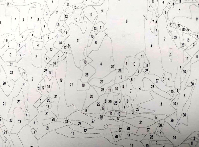 Чудо. Сега остава да лакирам картинката. Много ми стана смешно, че в упътването пише нещо в смисъл – вие сигурно ще искате да впечатлите роднините си, затова в комплекта има и метална кукичка, с която да закачите картината си на стената. Какви роднини имат хората! Мислех да повторя с боичките там, където прозират числата, но после реших, че така ми харесва повече, леко да прозира, че произведението ми се е получило чрез игра.