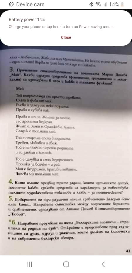 Търсех си една снимка в месинджър, която Зоре от Жанет 45 ми беше пратила, и се зачетох. Колко хубаво сме си писали. Претъркалях чата месеци и години назад и се почувствах, все едно сме се видяли и сме си говорили спокойно и безкрайно. Това никога не се е случвало, защото все нещо организираме, бързаме и правим, и се вълнуваме и измисляме, и все си пишем тичешком. Обичам Зоре. Та през късната есен тя ми е казала, че нейният Здравко има да пише домашна работа за мое стихотворение – и аз, с неугасващ отличнически пламък, съм й предложила да му напиша това домашно. Да каже на госпожата – вижте, това го знам лично от автора. И го написах. И сега като го намерих, си го прочетох. Ама много ги разбирам тия работи! Не знам в кой учебник е текстът със задачата към него, но ако сте в 8 клас и ви изпитват на това – заповядайте пищов.