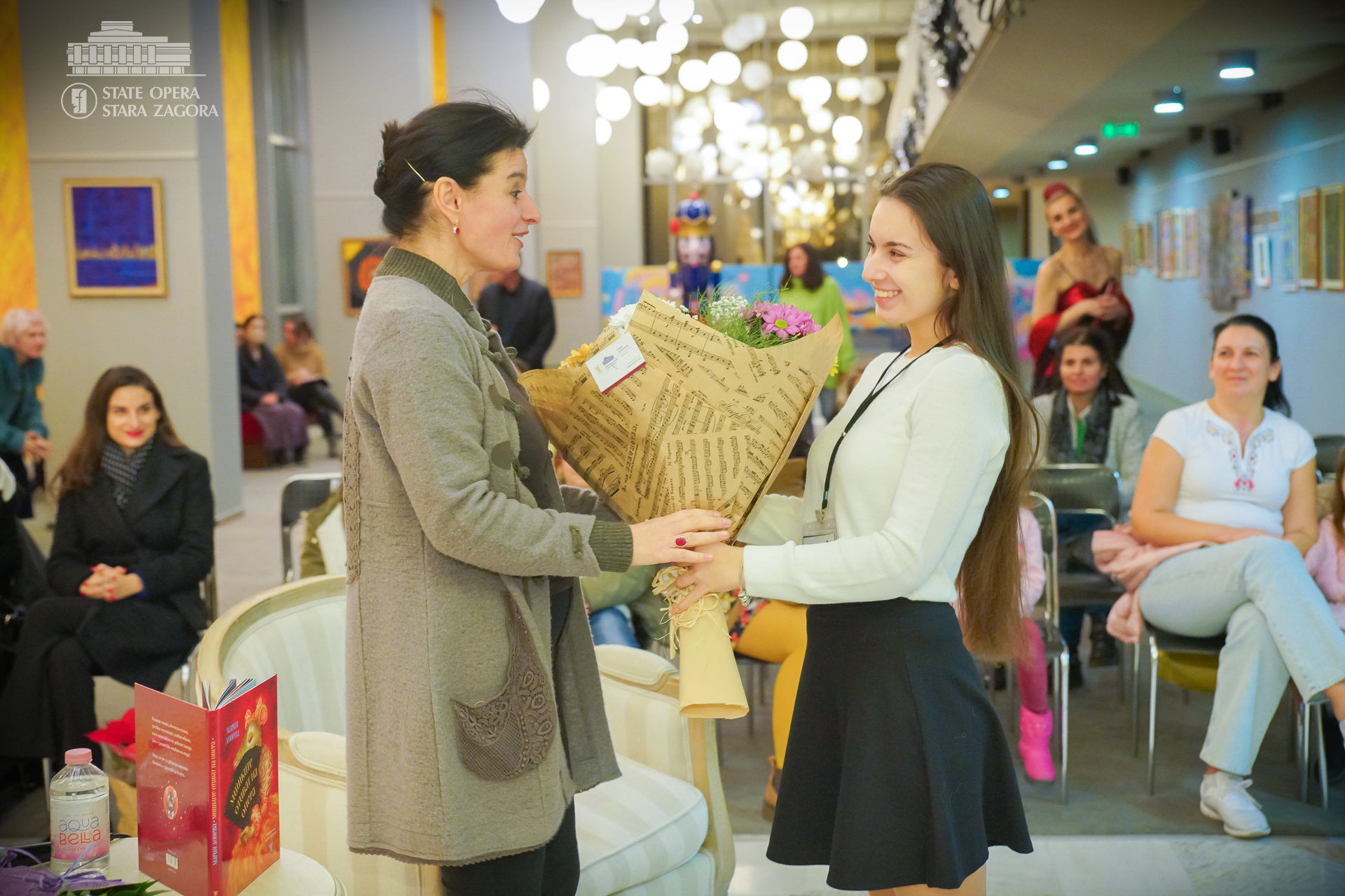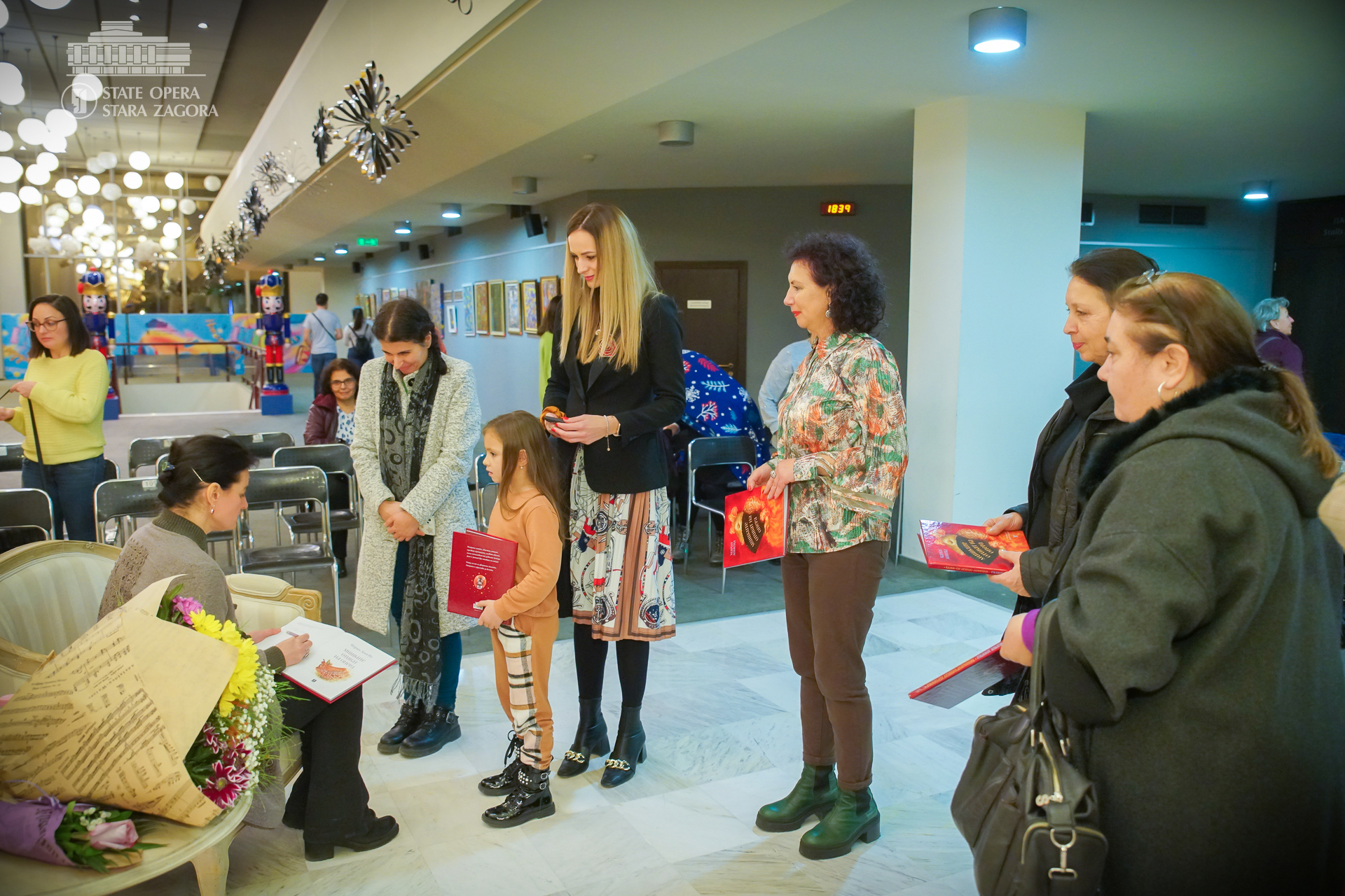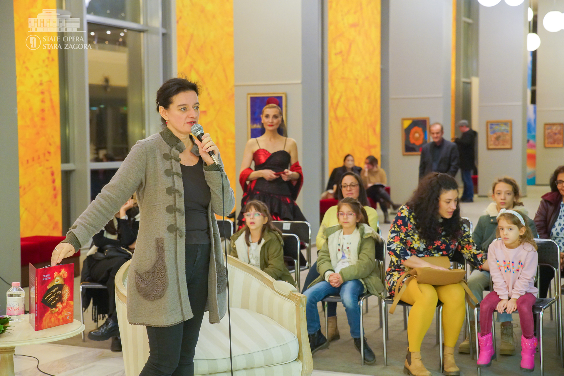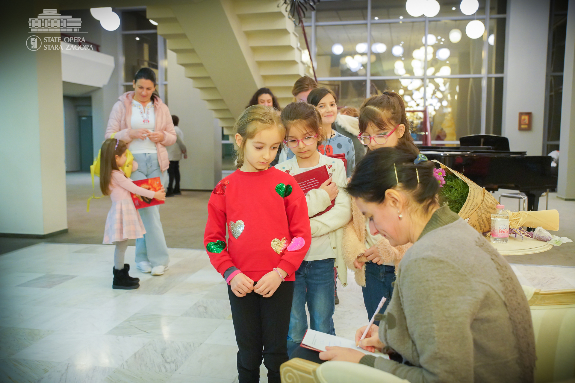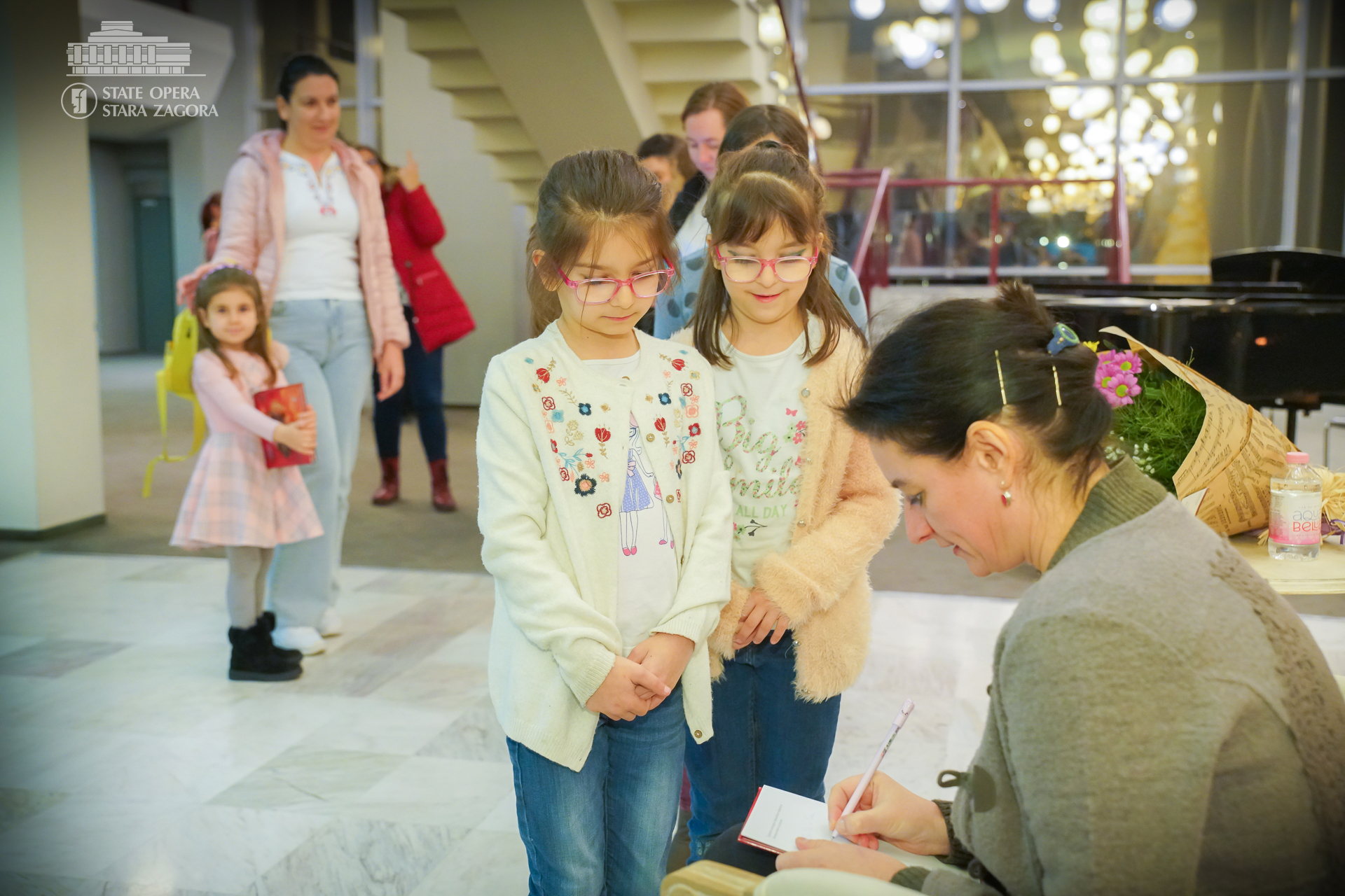Представям си колко странно може да прозвучи това, но от един час разглеждам снимките от снощи, смея се и по едно време май и плаках. И не съм написала и една дума, само преживявам снощната премиера. А трябва да се разкаже. Първо, благодаря на Уляна Кьосева за това, че ме покани да представя „Мишките отиват на опера“ точно там, в самата опера. Особено е, защото точно това е конкретната опера, в която Миленка и Яничка ме заведоха и ми показаха колко хубаво нещо е операта изобщо. И като съм писала за хор, балет, музиканти, солисти и за лампичката „изход“, съм имала предвид точно тези изпълнители, по имена и лица, с техните гласове, тези светлини и всичко това. Поемата е израз за моята почит и моя възторг. От 18 часа във фоайето – премиера на книгата, от 19 часа – премиера на „Лешникотрошачката“ в изпълнение на Детската балетна школа към Държавна опера Стара Загора. И отивам. Ще се опитам съвсем сбито и кратко да ви кажа какво се случи там. Влязох през Служебния вход и видях познати лица от оперния хор, видях микроскопични балеринчета, развълнувани, че след малко ще имат спектакъл. Уляна ме поведе към фоайето и по пътя ни пресрещна Кармен!