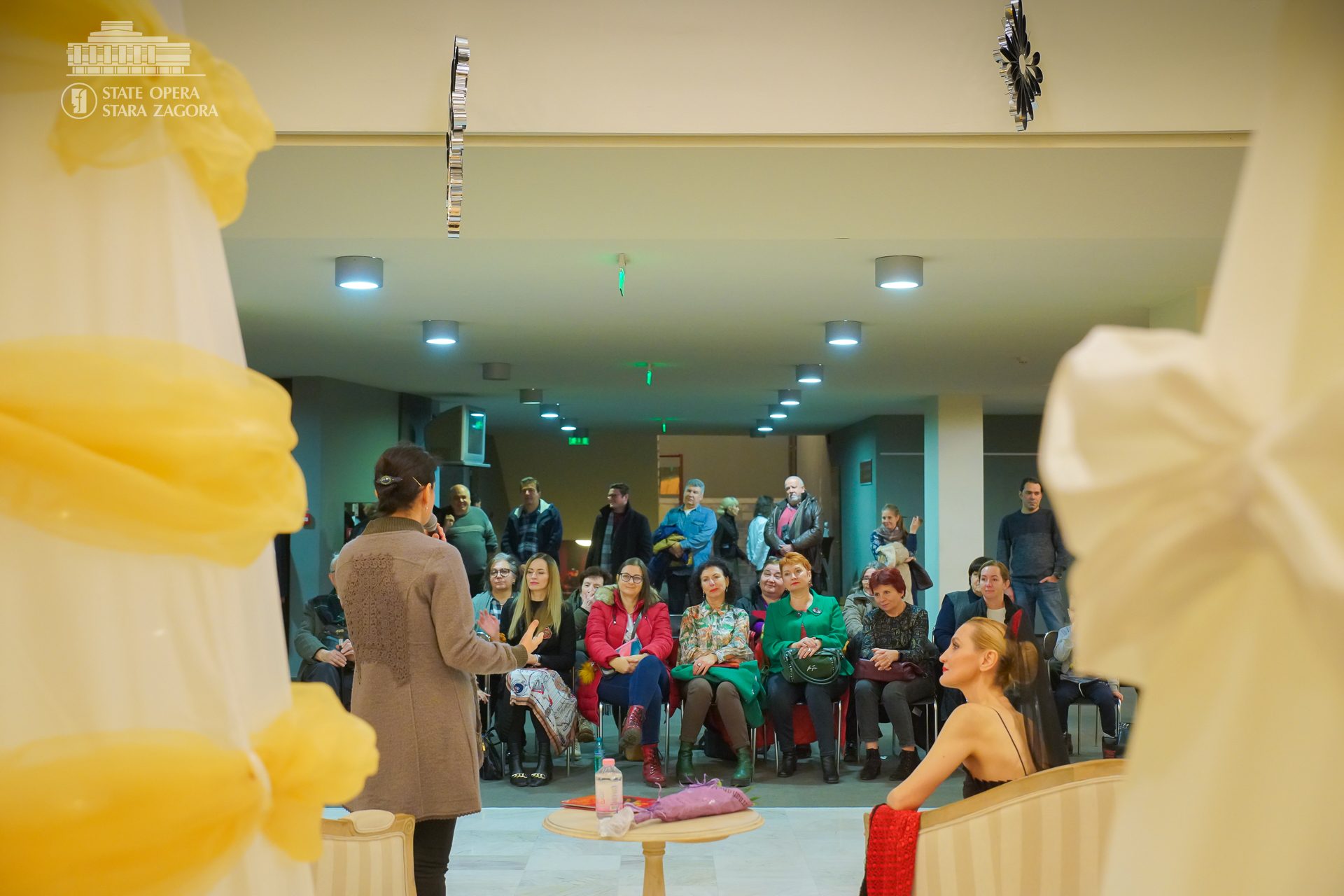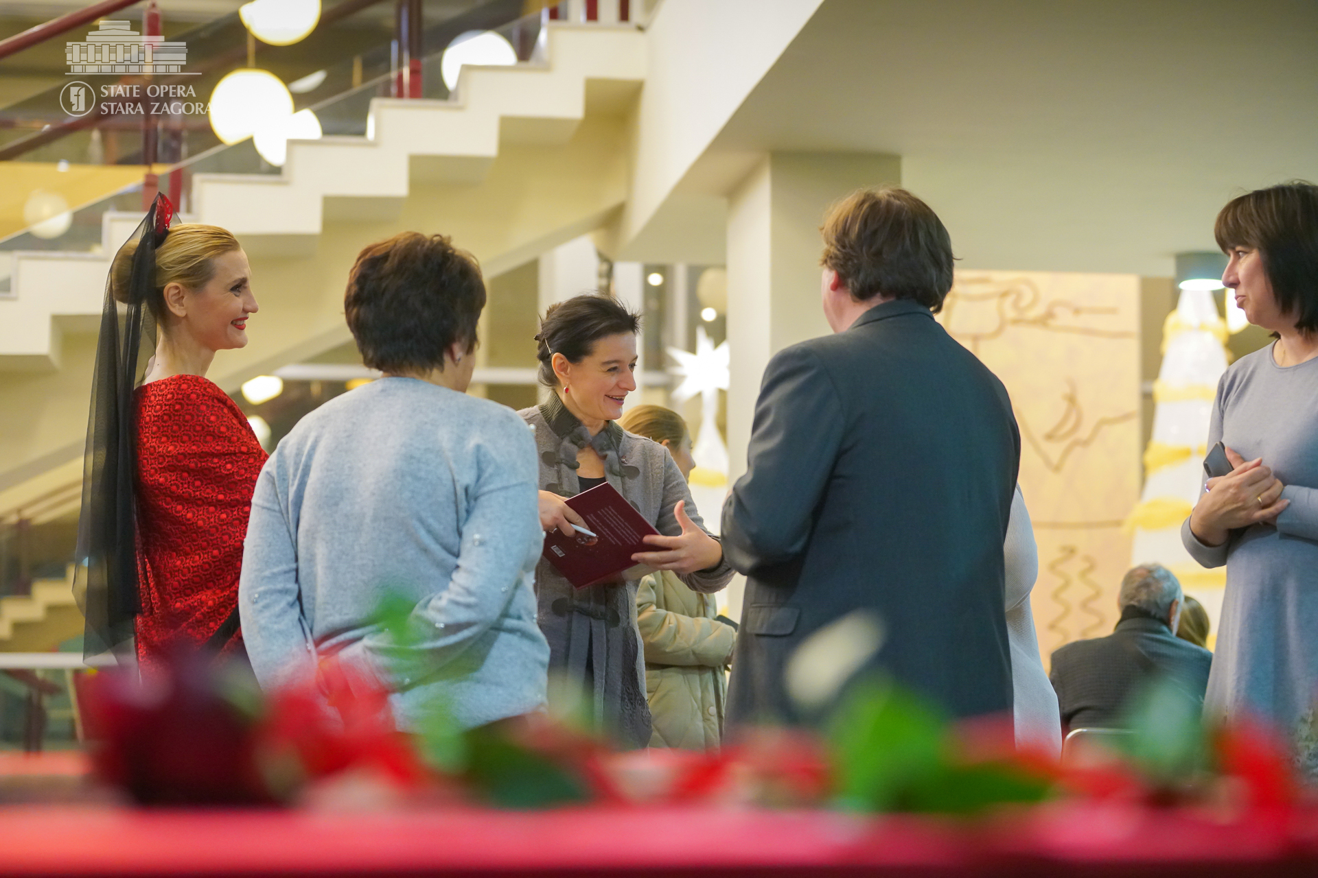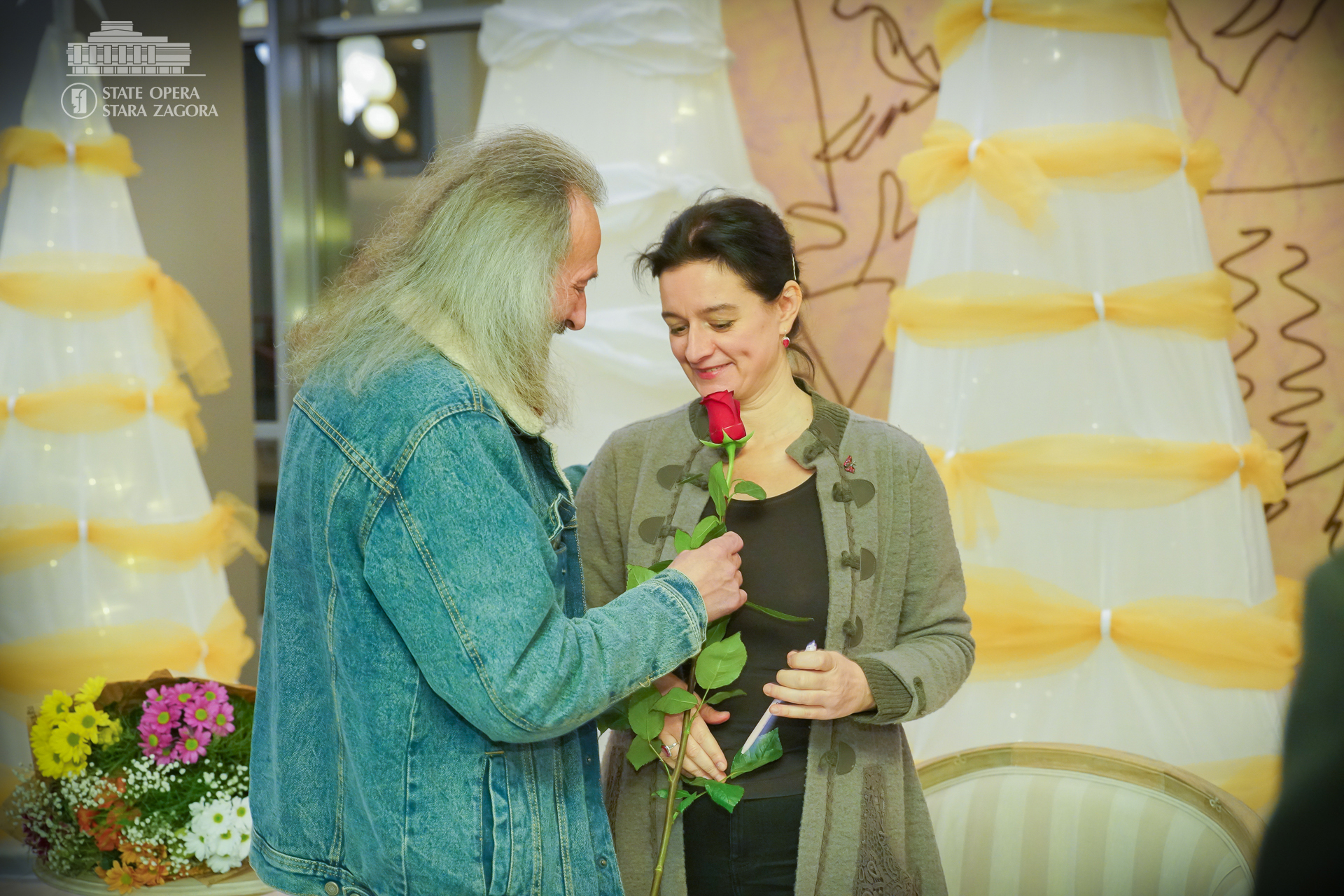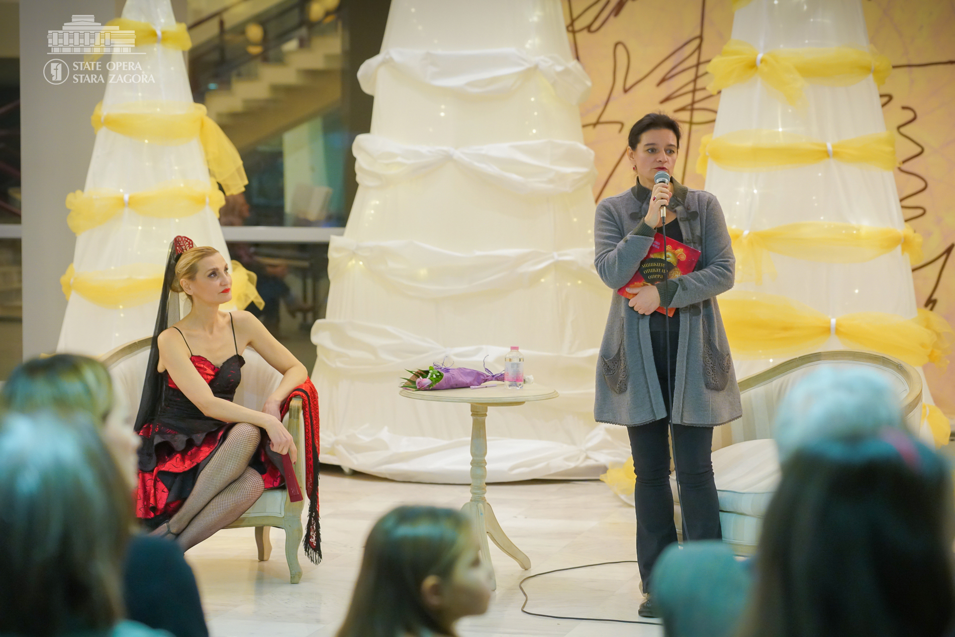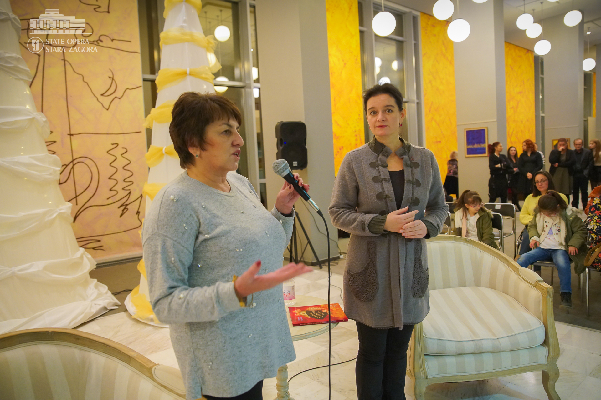 Представям си колко странно може да прозвучи това, но от един час разглеждам снимките от снощи, смея се и по едно време май и плаках. И не съм написала и една дума, само преживявам снощната премиера. А трябва да се разкаже. Първо, благодаря на Уляна Кьосева за това, че ме покани да представя „Мишките отиват на опера“ точно там, в самата опера. Особено е, защото точно това е конкретната опера, в която Миленка и Яничка ме заведоха и ми показаха колко хубаво нещо е операта изобщо. И като съм писала за хор, балет, музиканти, солисти и за лампичката „изход“, съм имала предвид точно тези изпълнители, по имена и лица, с техните гласове, тези светлини и всичко това. Поемата е израз за моята почит и моя възторг. От 18 часа във фоайето – премиера на книгата, от 19 часа – премиера на „Лешникотрошачката“ в изпълнение на Детската балетна школа към Държавна опера Стара Загора. И отивам. Ще се опитам съвсем сбито и кратко да ви кажа какво се случи там. Влязох през Служебния вход и видях познати лица от оперния хор, видях микроскопични балеринчета, развълнувани, че след малко ще имат спектакъл. Уляна ме поведе към фоайето и по пътя ни пресрещна Кармен!