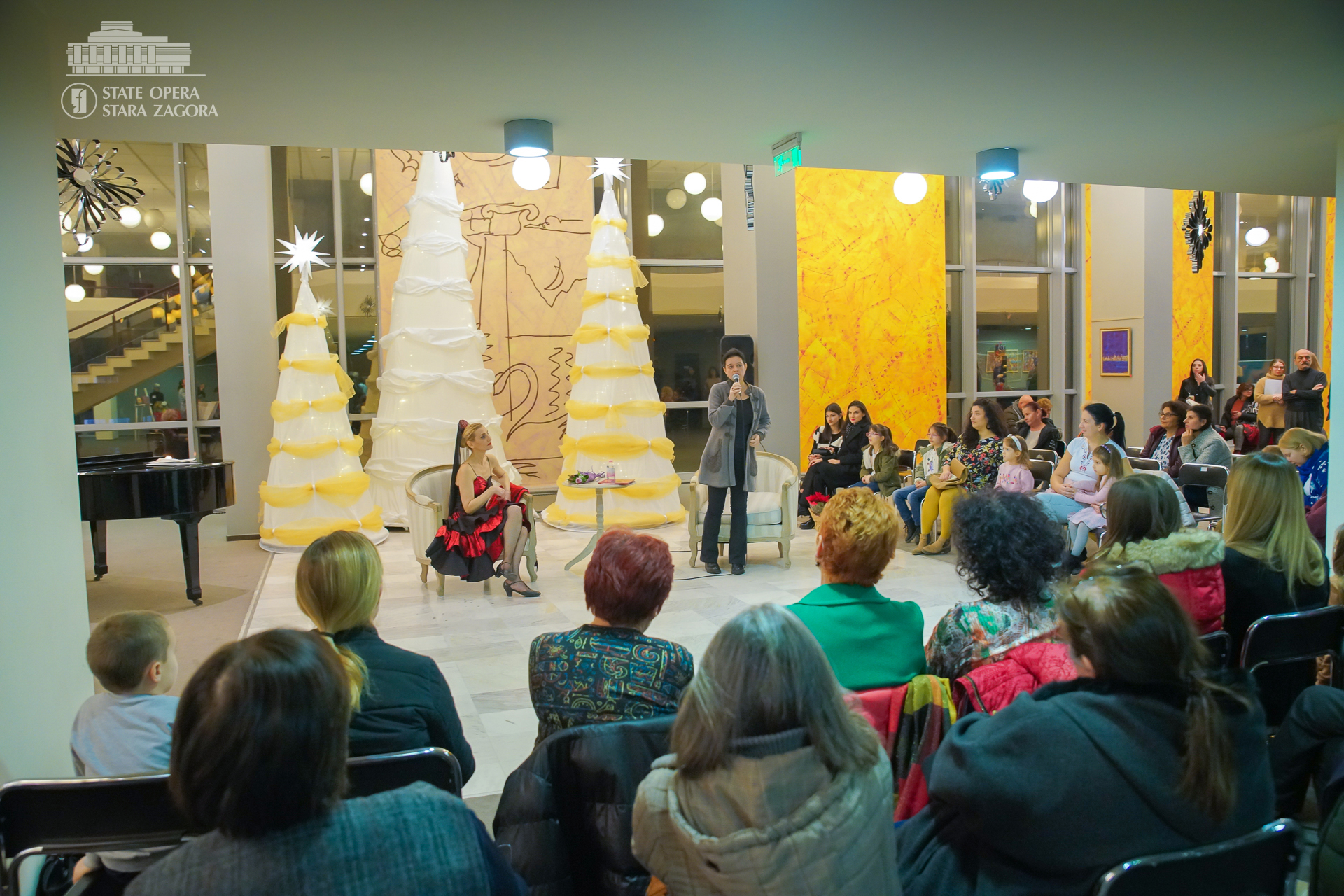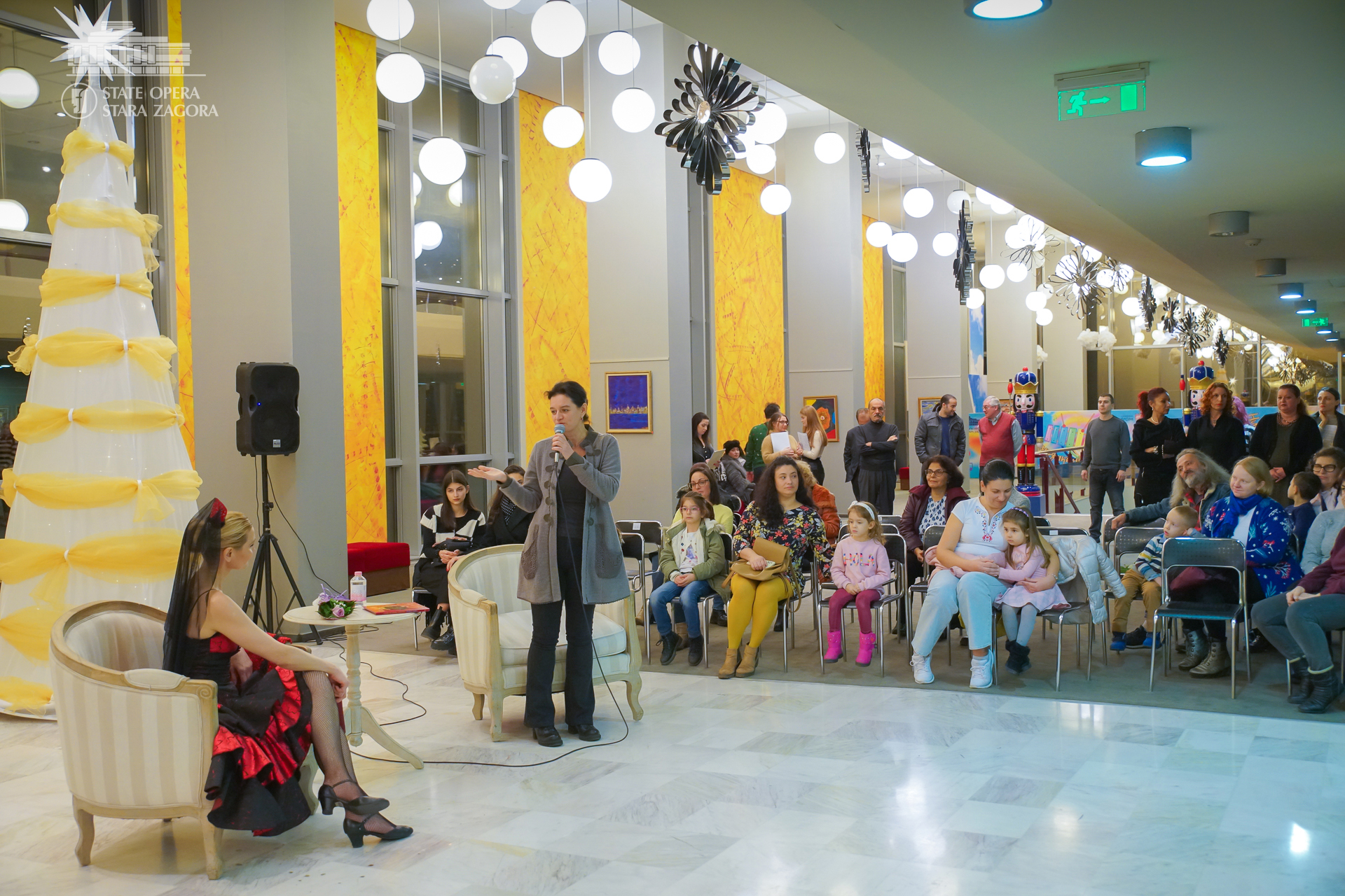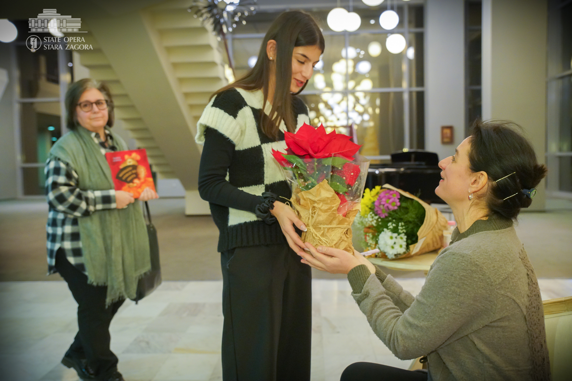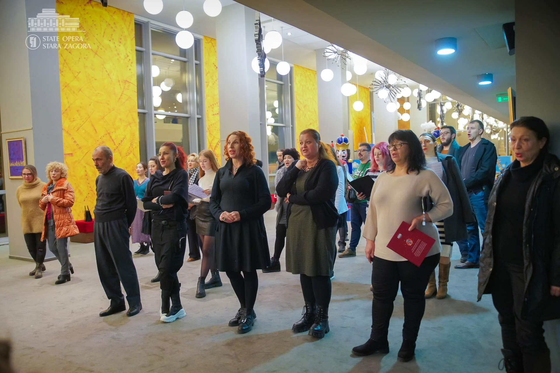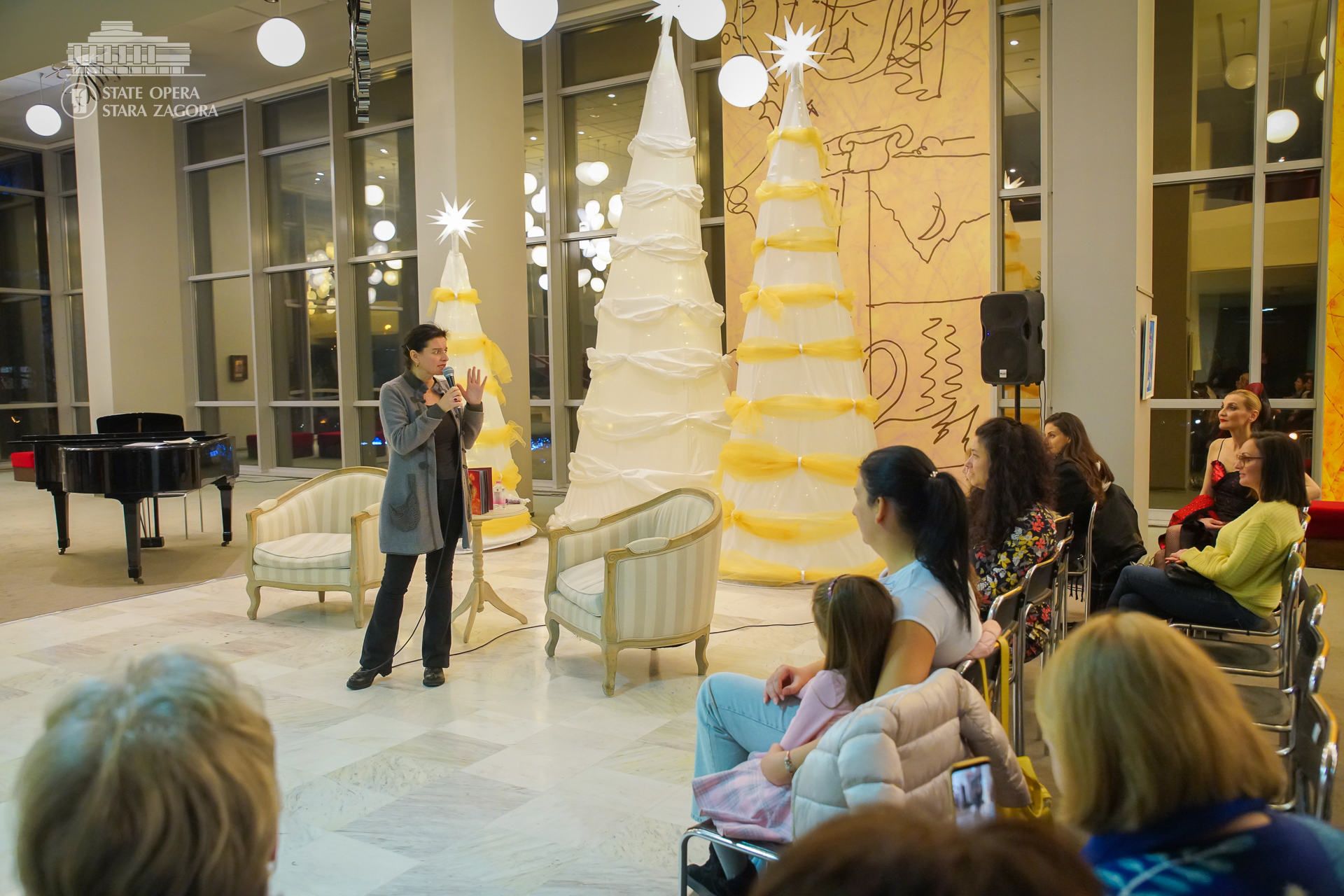 Представям си колко странно може да прозвучи това, но от един час разглеждам снимките от снощи, смея се и по едно време май и плаках. И не съм написала и една дума, само преживявам снощната премиера. А трябва да се разкаже. Първо, благодаря на Уляна Кьосева за това, че ме покани да представя „Мишките отиват на опера“ точно там, в самата опера. Особено е, защото точно това е конкретната опера, в която Миленка и Яничка ме заведоха и ми показаха колко хубаво нещо е операта изобщо. И като съм писала за хор, балет, музиканти, солисти и за лампичката „изход“, съм имала предвид точно тези изпълнители, по имена и лица, с техните гласове, тези светлини и всичко това. Поемата е израз за моята почит и моя възторг. От 18 часа във фоайето – премиера на книгата, от 19 часа – премиера на „Лешникотрошачката“ в изпълнение на Детската балетна школа към Държавна опера Стара Загора. И отивам. Ще се опитам съвсем сбито и кратко да ви кажа какво се случи там. Влязох през Служебния вход и видях познати лица от оперния хор, видях микроскопични балеринчета, развълнувани, че след малко ще имат спектакъл. Уляна ме поведе към фоайето и по пътя ни пресрещна Кармен!