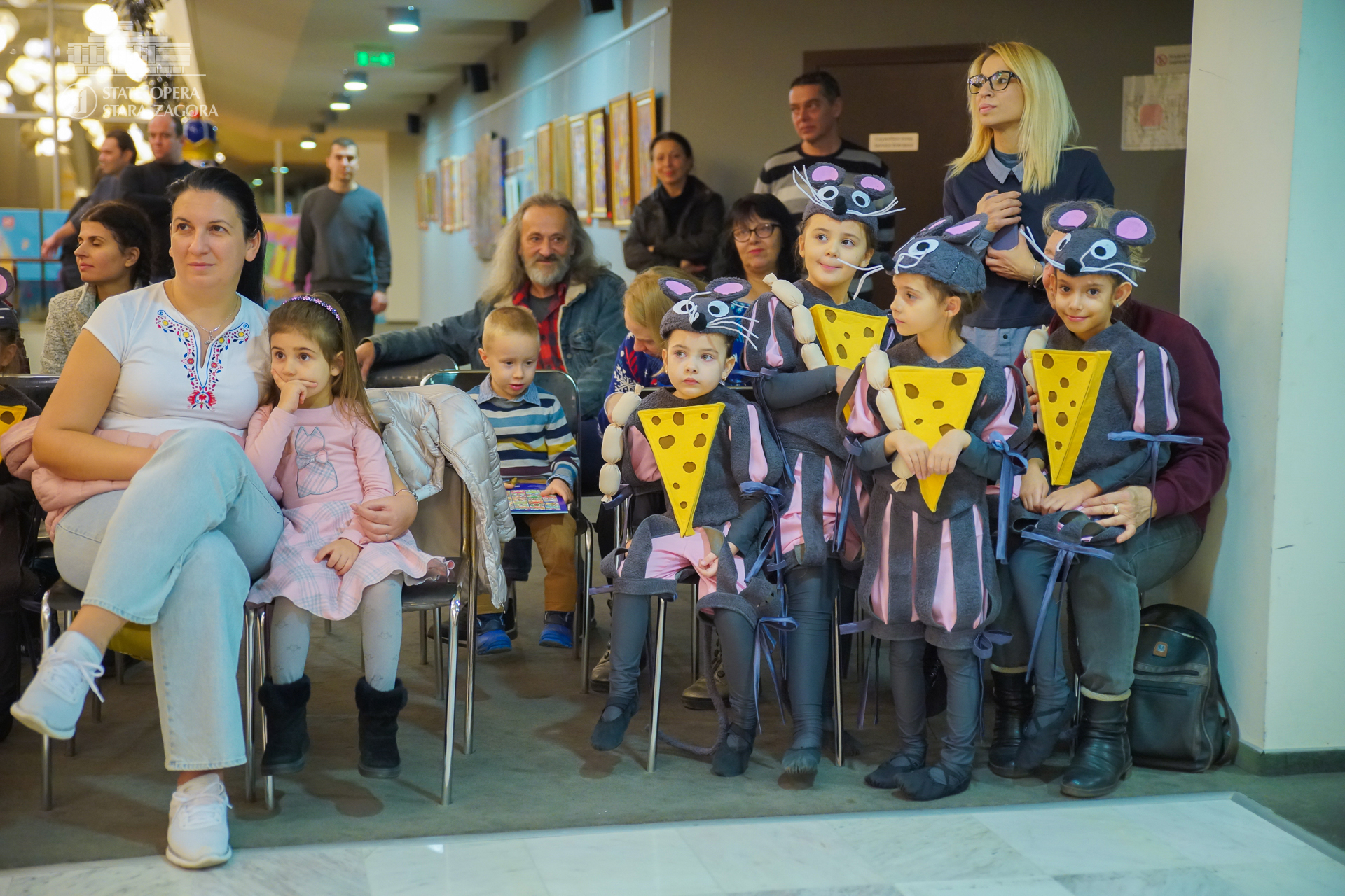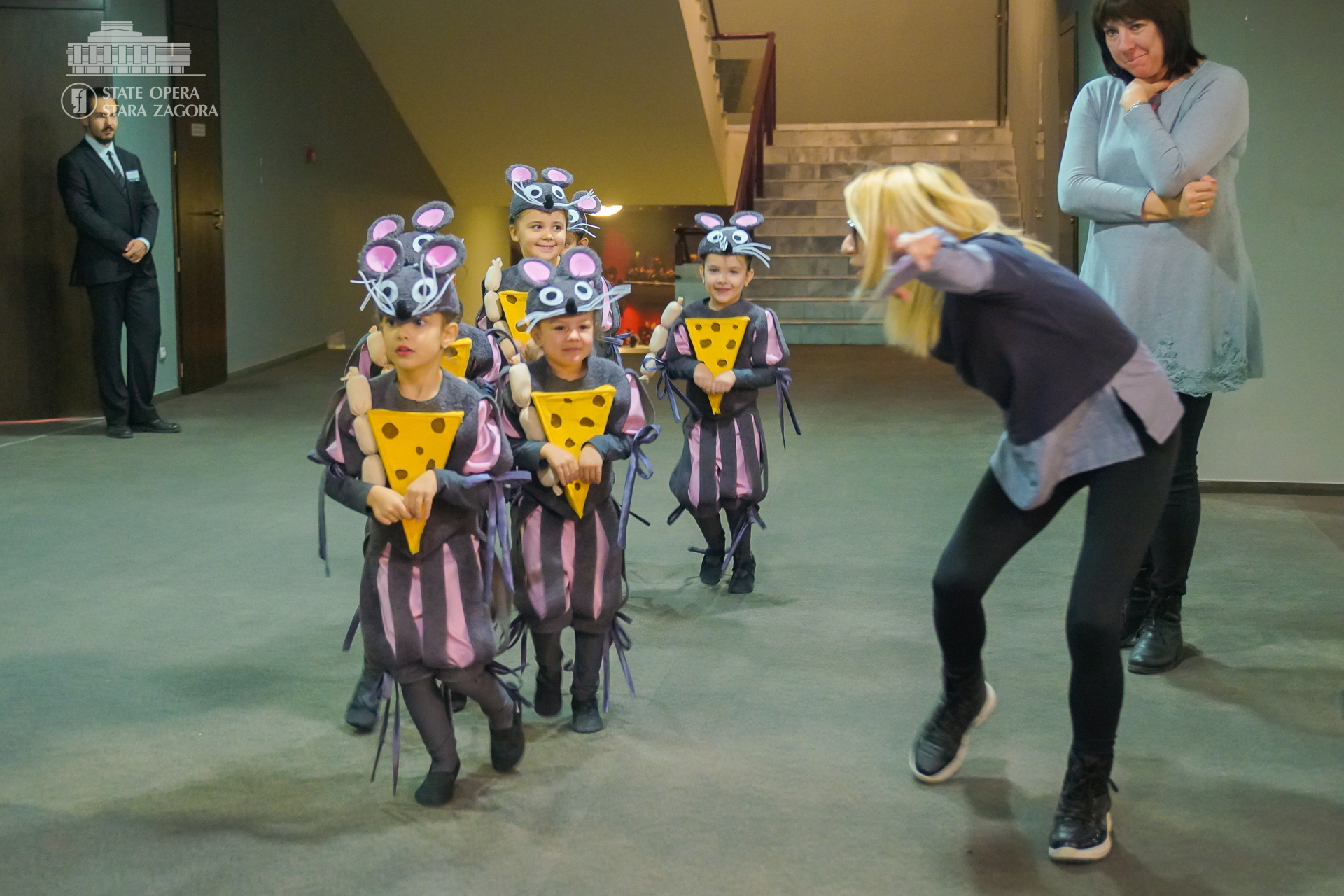 Даде ми микрофона и аз тъкмо започнах да разказвам и да благодаря, знаете ли кой дойде? Е, как кой? Мишките дойдоха на опера!