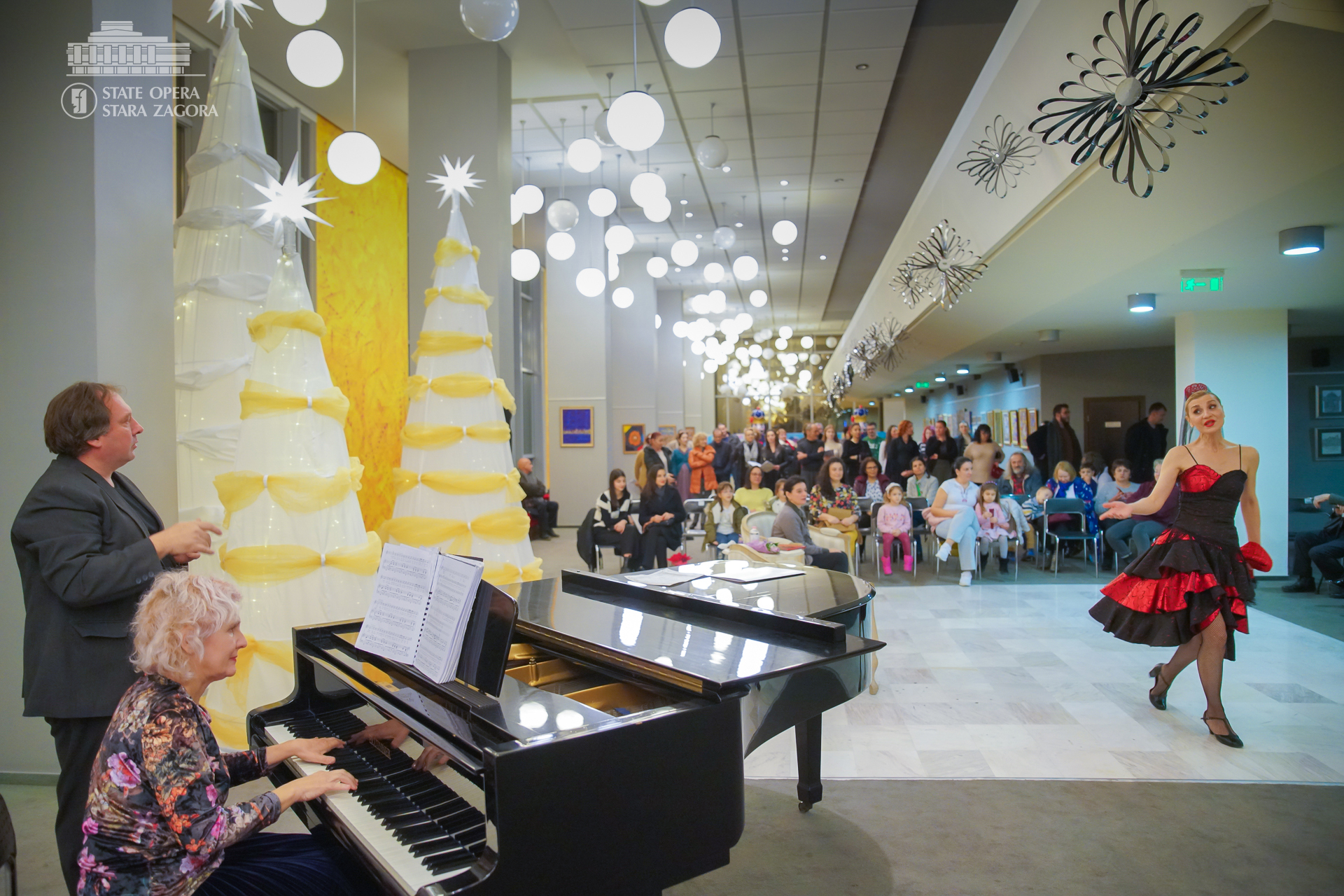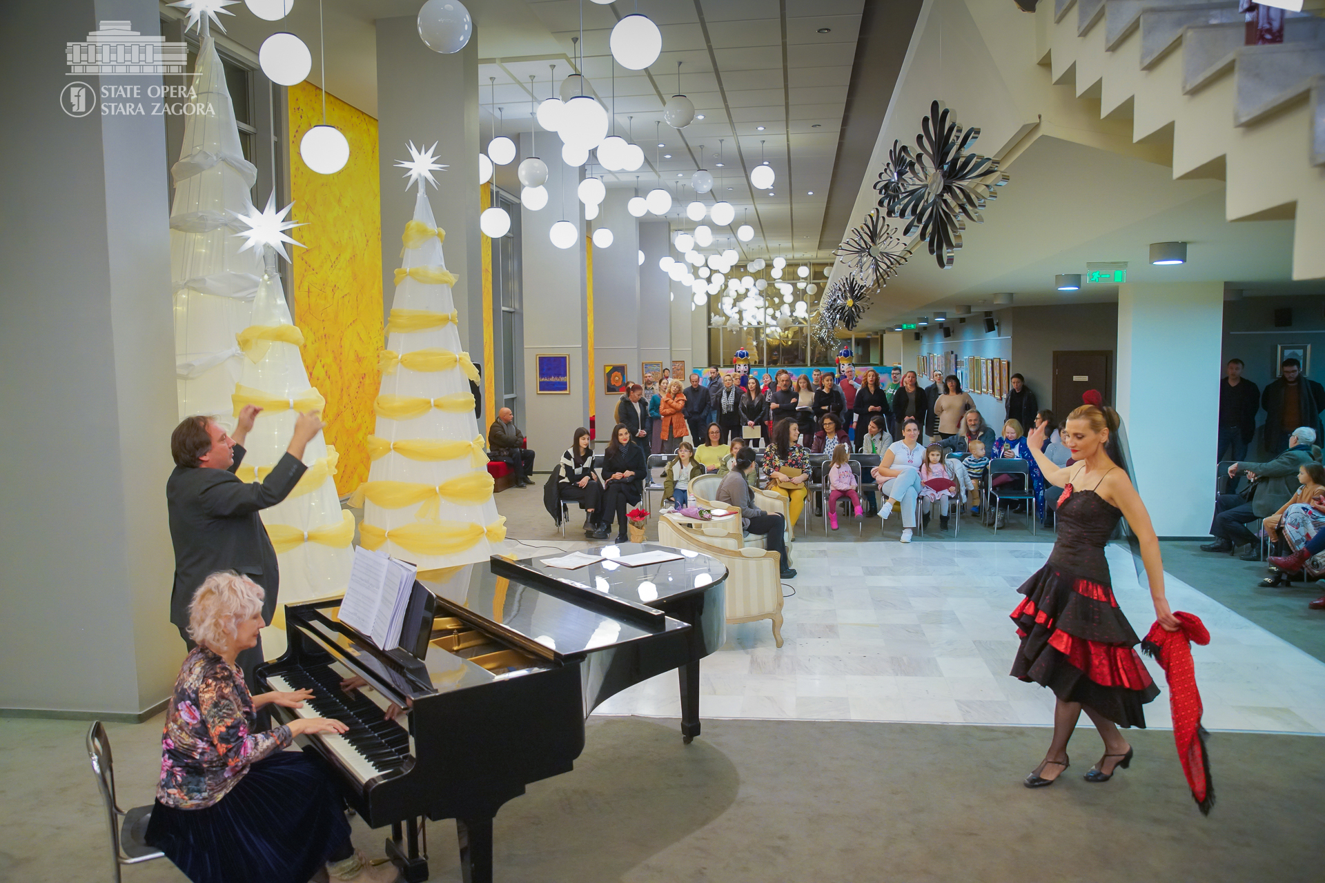 Ивон Иванова, и ми казва, че ще изпълни Хабанерата. Там, пред нас, там. Специално. Бързо решихме как кога, аз – в пълно присъствие на духа, естествено. Изобщо не си личи, че се треса. Дойдоха приятели, познати, непознати, дечица, майки и бащи, имаше светещи елхи и цветя, и еленови рогца. И да започваме, за да има време за почивка преди балета. Първо Уляна ми каза добре дошла.
