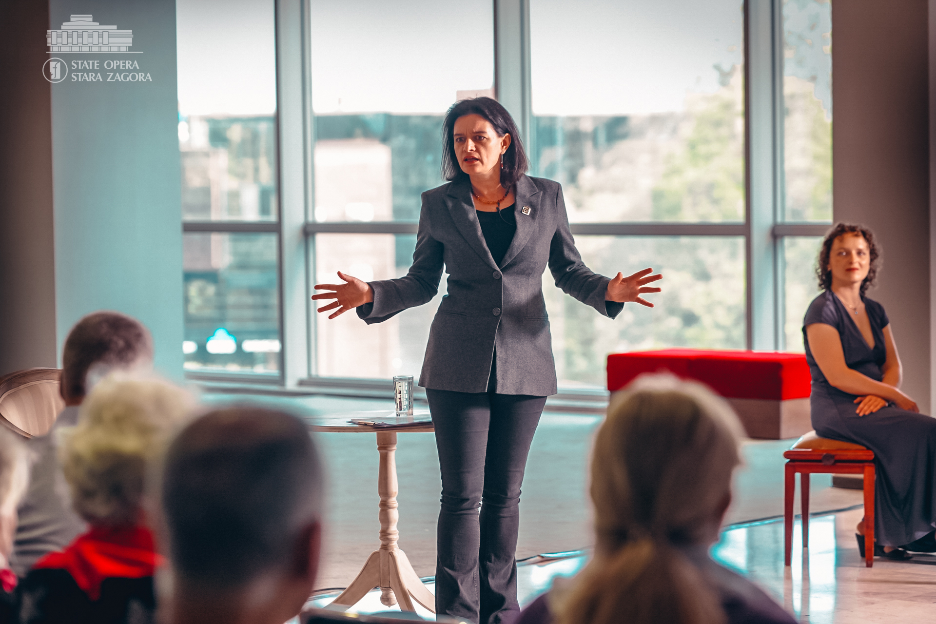После аз разказах приказката за Кармен, и като стигнах до момента, в който всички се възхищават на Кармен и я следят с поглед, само дон Жозе дори не я поглежда, затова тя… – Дечица, аз нали ви казах! Операта е вълшебно място, тук границата между реално и вълшебно е съвсем тънка. Вижте, самата Кармен е дошла при нас! И точно така си беше.