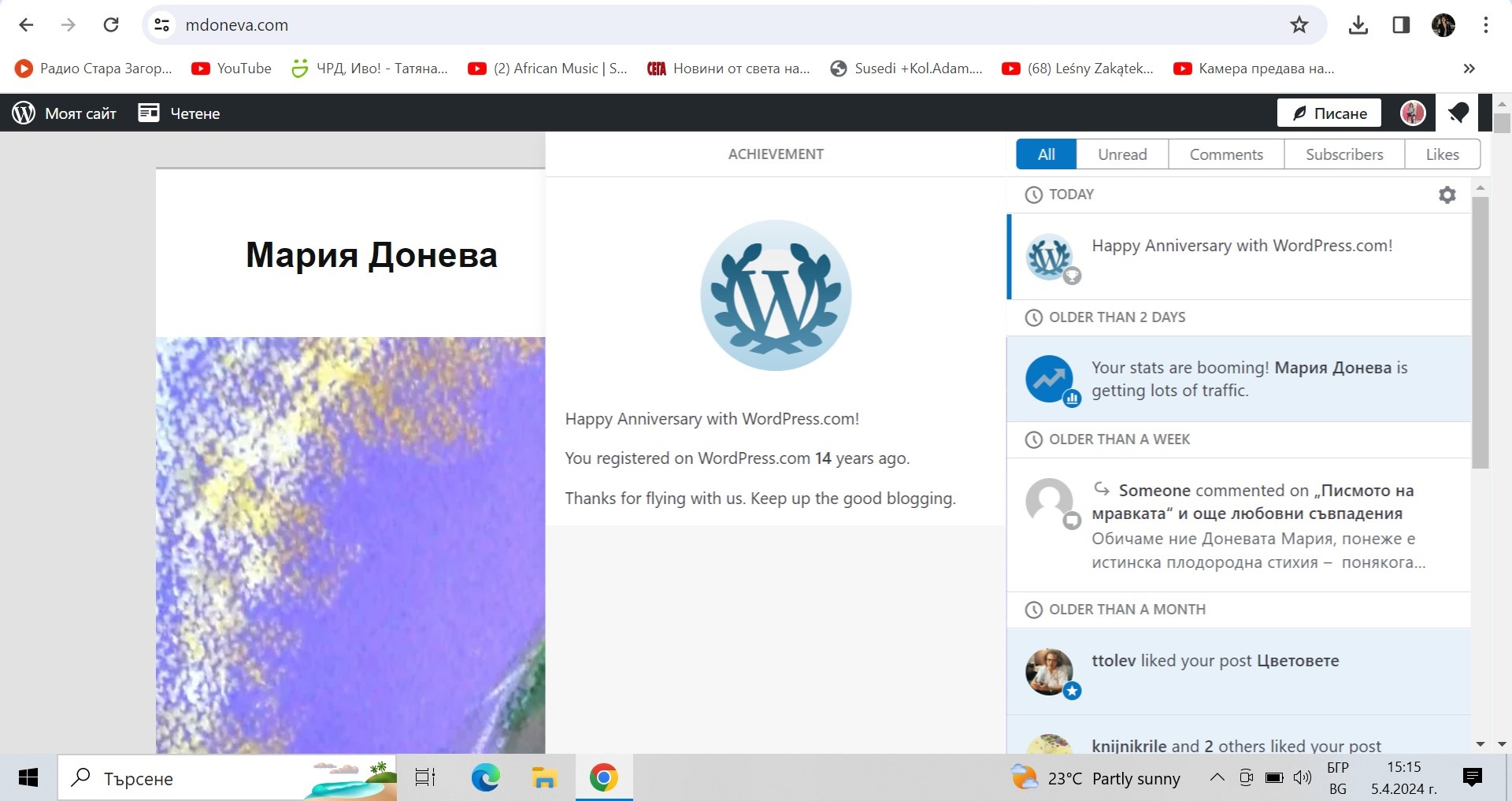 Колко хубаво, че си имам блог! Ан и Йовко ми казаха да го направя, точно преди 12 години, и оттогава знам, и вие да знаете от мене – идеите им са добри. Напоследък по-рядко публикувам тук, но това изобщо не означава, че по-малко си обичам блога. Напротив, напротив! Обичам го, защото от тук минава почти целият свят.