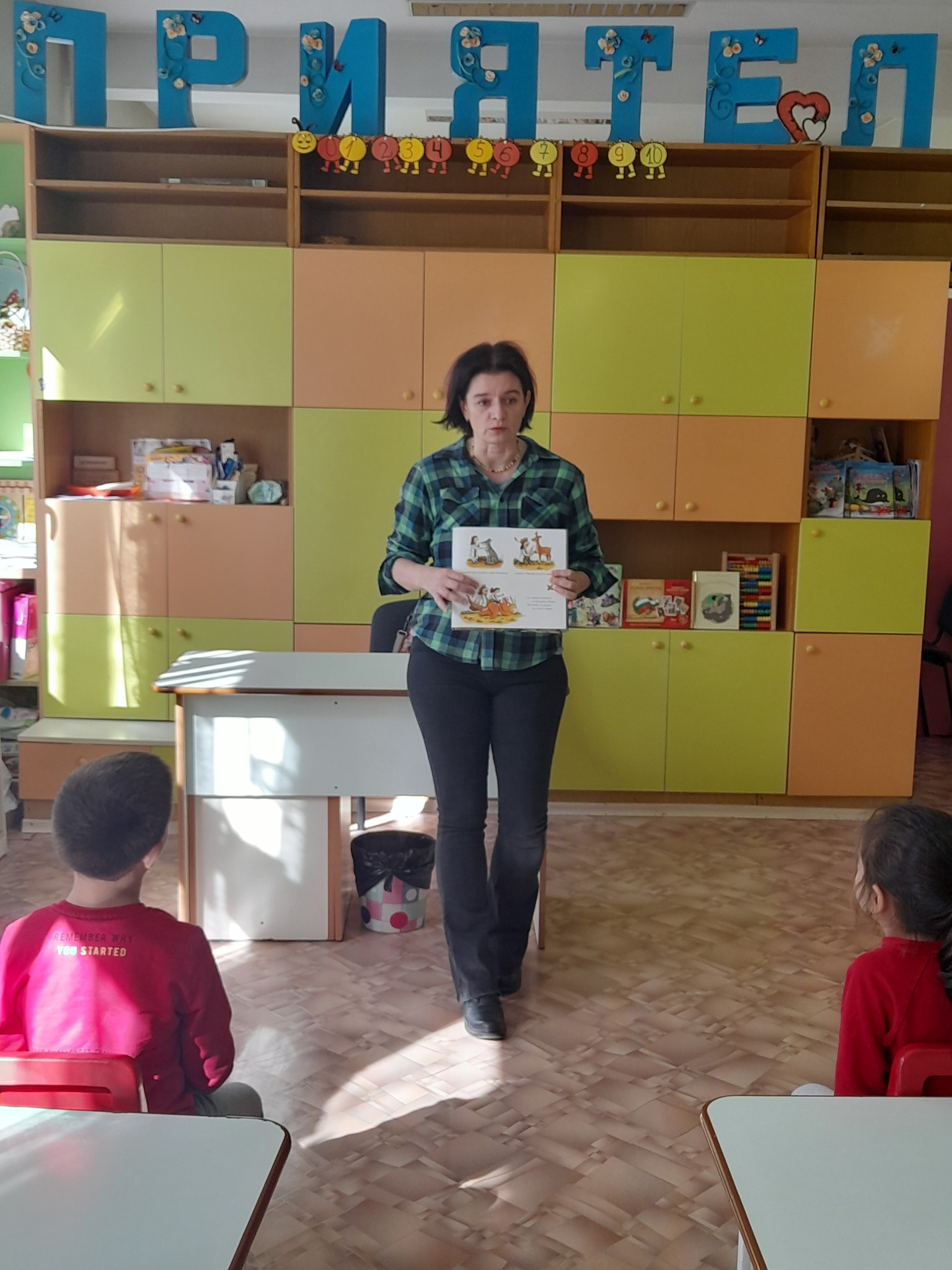 1 април, „Врабчова сговорна дружина”, Никола Вапцаров 2 април, „Нетърпение в кутия” 3 април, „Райска ябълка”, Васил Сотиров 4 април, „Куче на име Коте”, Томи Контио, превод Росица Цветанова 5 април, „Приказка ей така, прасешка при това”, Мила Попнеделева-Генова 6 април, „Приспивни песни за феи и чудовища”, Сотир Гелев 7 април, „Болничното куче”, Джулия Доналдсън 7 април, среща с деца в читалището в с. Хрищени 8 април, „Приказки по действителен случай”, Иванка Могилска 9 април, „Зог и Летящите Лекари”, Джулия Доналдсън 9 април, среща с деца в читалището в с. Преславен 10 април, „Пет мили мишлета”, Чисато Таширо, превод Владимир Молев 11 април, „Вечер във Венеция” 12 април, „Добрите стопани”, Асен Разцветников 13 април, „Небивалици с буквите от А до Я”, Цвета Брестничка 13 април, среща 4 класа деца в с. Сотиря, това са си 4 отделни срещи 14 април, „Мог забраваната”, Джудит Кер 14 април, две срещи с четвъртокласници и една – с единайсетокласници в Попово 15 април, „Слончето, което искаше да лети”, Лиляна Дворянова 16 април, „Сиводрешко и Бързобежко”, Леда Милева 16 април, среща онлайн с деца от Русе и от българското училище в Прага 17 април, „Зеленогледите”, Деница Минева, превод в стихове Зорница Христова 18 април, „Рибко”, Джулия Доналдсън 19 април, „Хмутовете”, Ирен Леви 19 април, среща с 8 б клас в ПМГ „Гео Милев” – Стара Загора 20 април, „Жабешки истории”, Йордан Радичков 21 април, „Лече буболече”, Георги Авгарски 21 април, среща с ученици в 12 СУ „Цар Иван Асен Втори“ 22 април, „Небето е на всички”, Джани Родари, превод Валери Петров 23 април, среща онлайн с ученици от Русе 23 април, в градската градина, „Четем поетите на Стара Загора“ 23 април, среща с деца от Второ основно училище „Петко Рачев Славейков“ 23 април, стихотворения от Недялко Йорданов, Елица Мавродинова, Тодор Толев, Александър Белчев, Борис Христов, Румен Денев, Ники Комедвенска, Николай Милчев и Райчо Русев