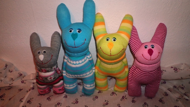 Не знам какво да кажа. Ето празнични чорапени зайчета.