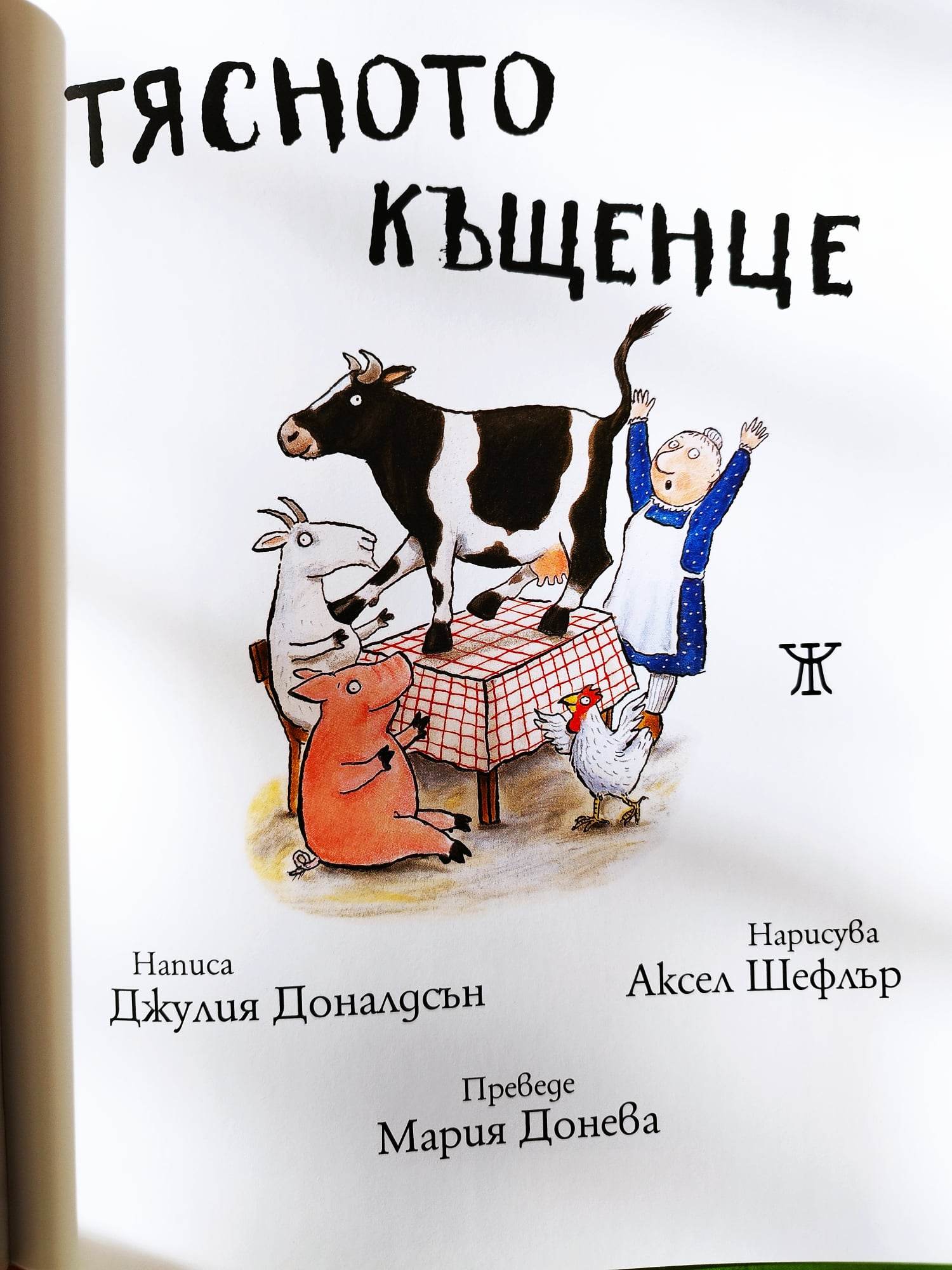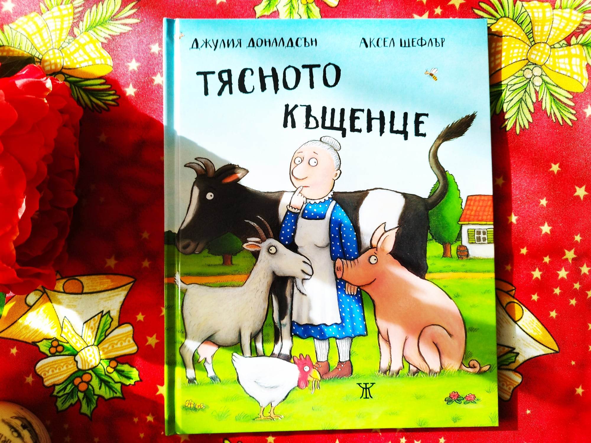 „Тясното къщенце“ (оригиналното заглавие е „A Squash and a Squeeze“). Това е първата съвместна работа на Джулия Доналдсън и Аксел Шефлър, публикувана точно преди 30 години.