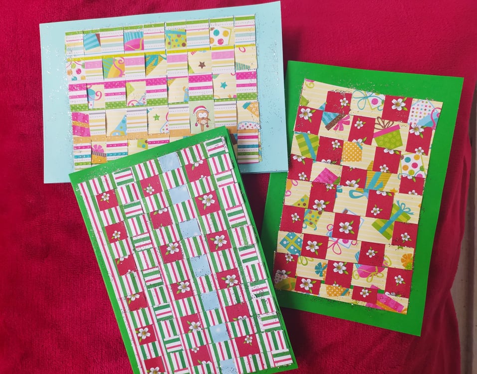 Пъстра хартия и късчета плат.