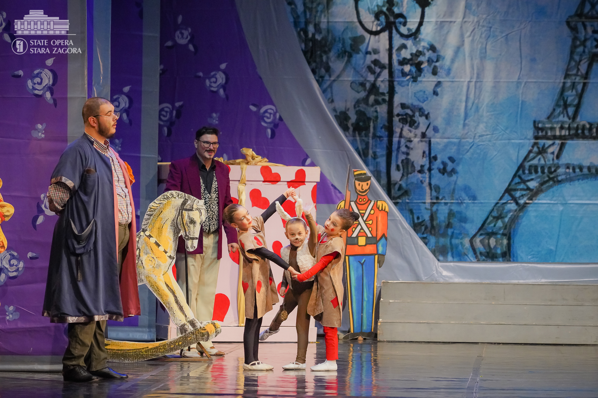 В продукцията участват солисти и оркестърът на Камерна опера Благоевград, както и танцовото студио „Deja Vu“. Режисьор е Илина Стойнова, диригенти – Инна Диловска-Язовалийска и Красимир Топалов, а сценографията е дело на Георги Славков.