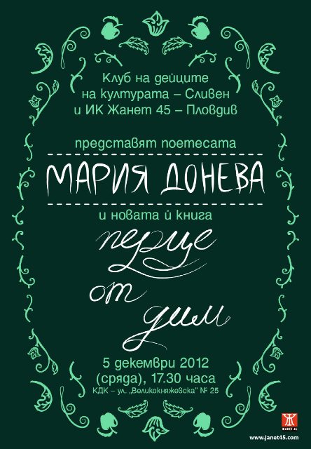 Да, щях да забравя да кажа. Клубът на културните дейци в Сливен е много хубаво място. Това е една голяма възрожденска къща, част от цял комплекс (който не можах да разгледам, защото валеше проливно и беше тъмно). Това е от онези чисти и просторни къщи с дървени мебели и дърворезби, в които някак и въздухът е чист и лек, а аз не бях там туристка, а Участвах, Правех нещо… за което съм безкрайно благодарна.