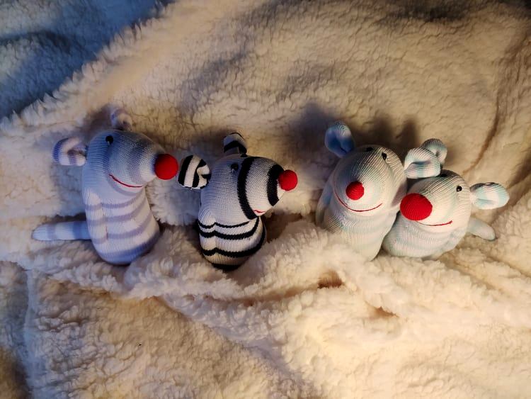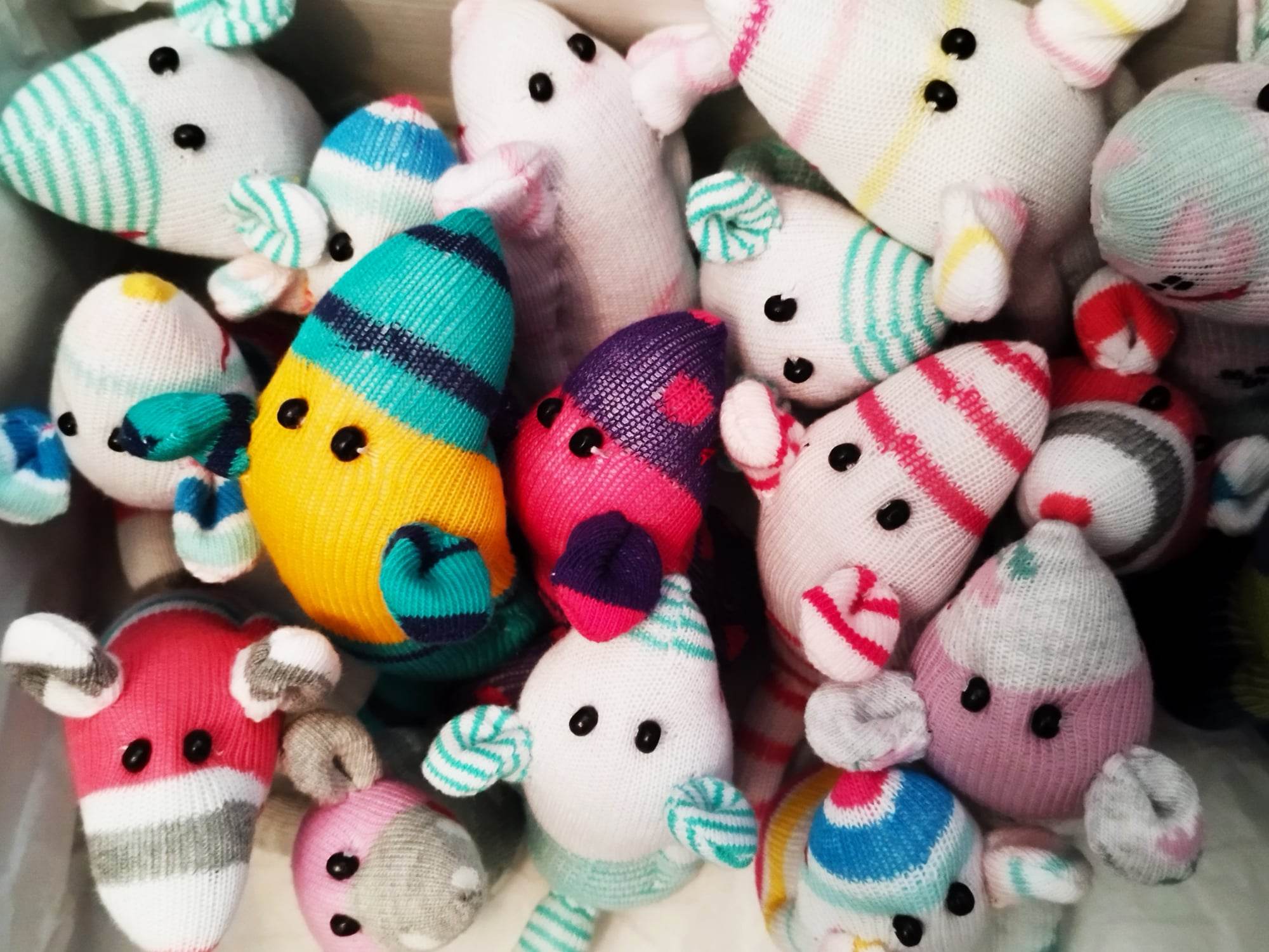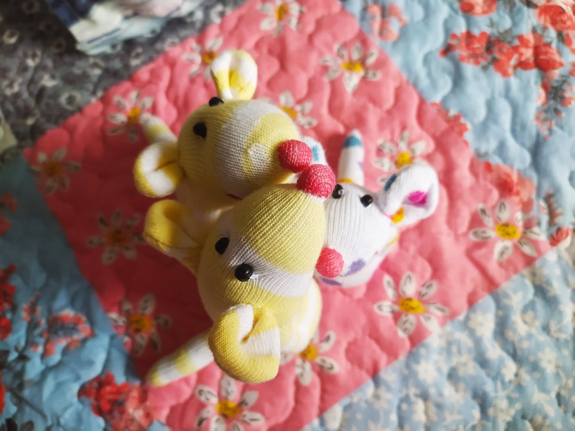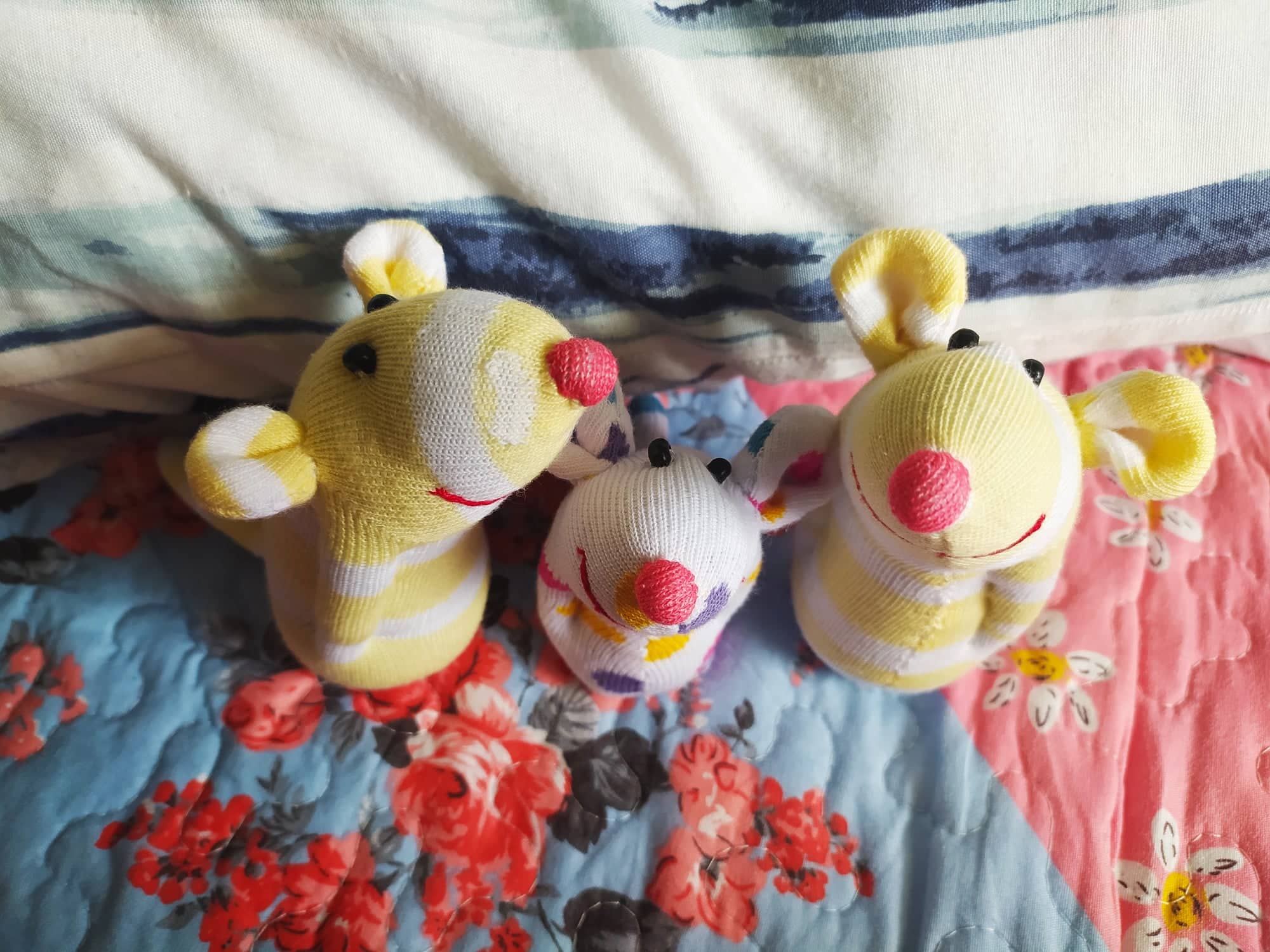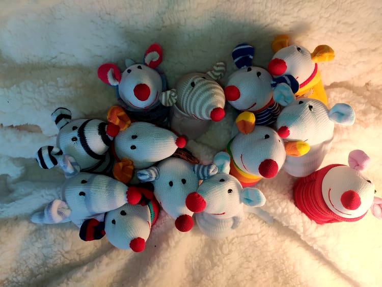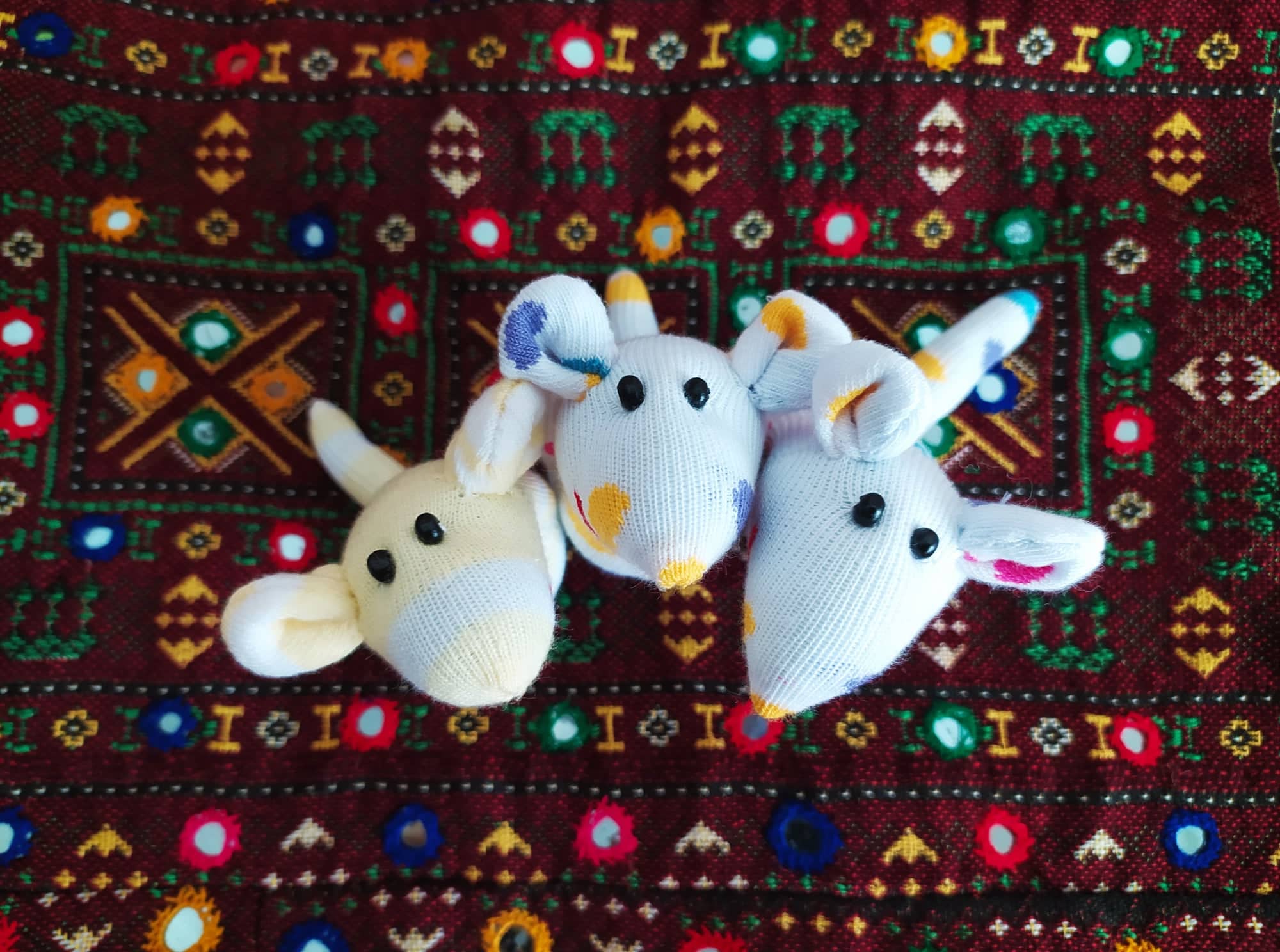 Шия само от време на време, обаче играчките се задомяват по-бързо, отколкото смогвам да ги снимам, и повечето хич не стигат до тук. Вчера и днес правих мишки (вж. по-долу).