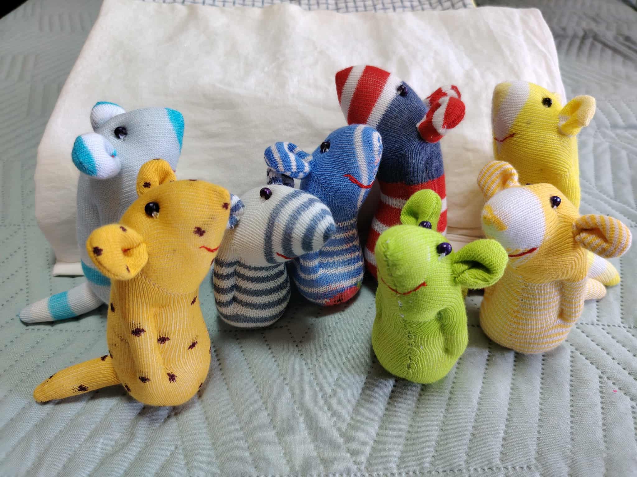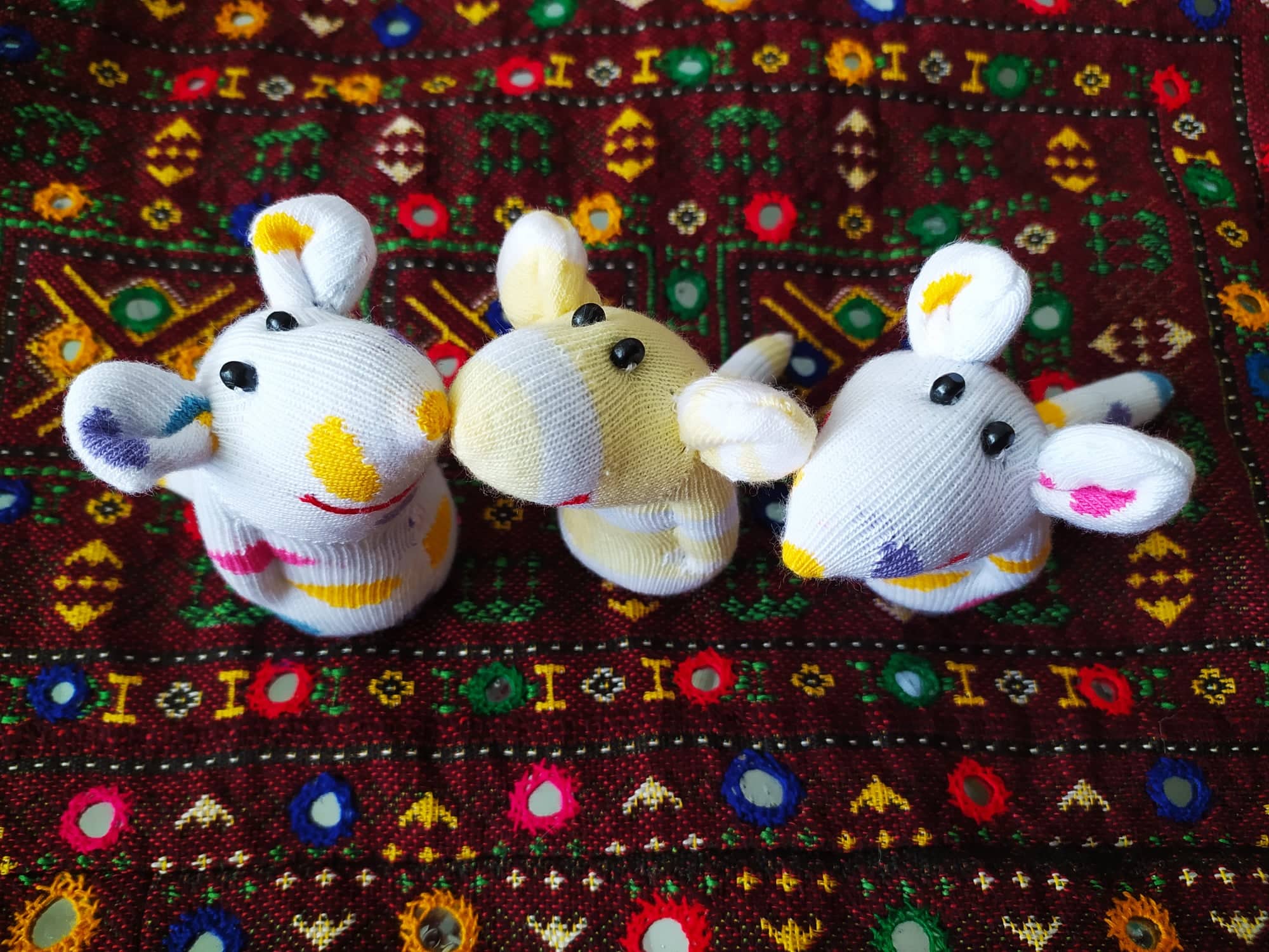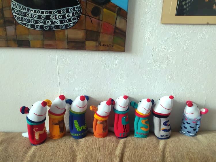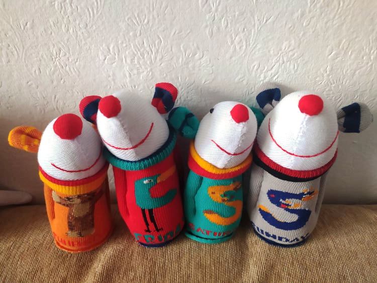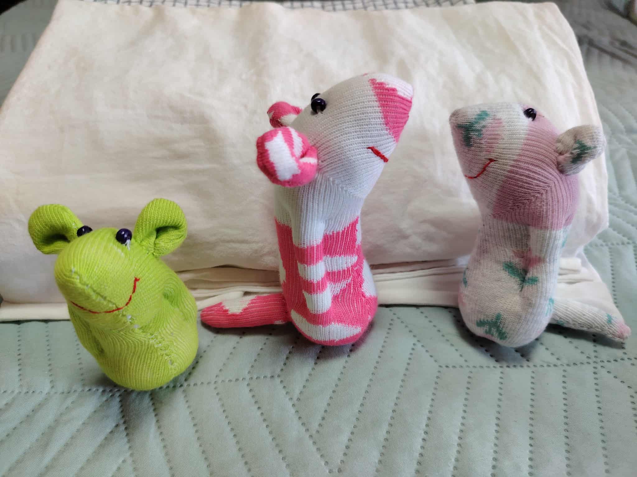 Шия само от време на време, обаче играчките се задомяват по-бързо, отколкото смогвам да ги снимам, и повечето хич не стигат до тук. Вчера и днес правих мишки (вж. по-долу).