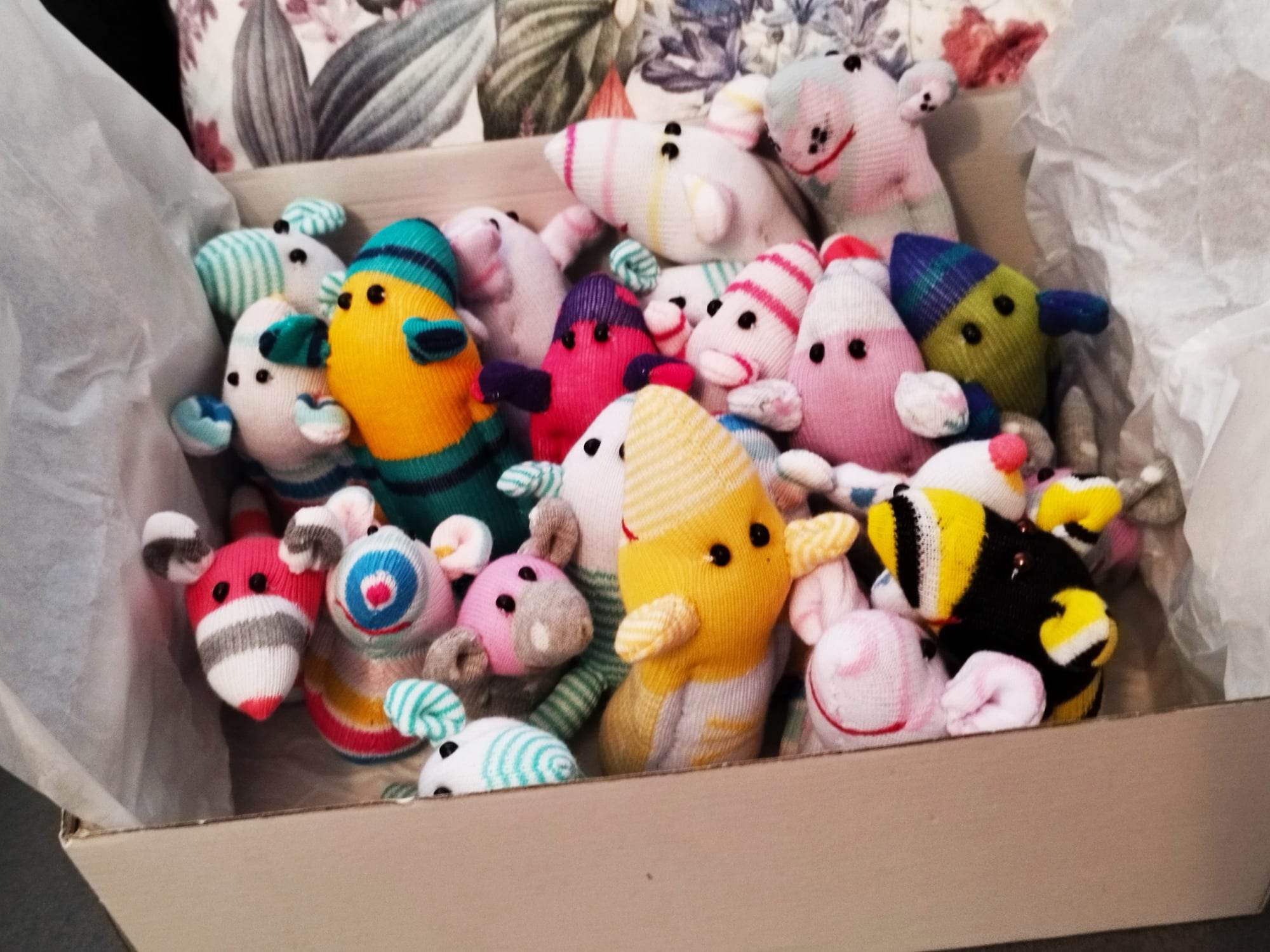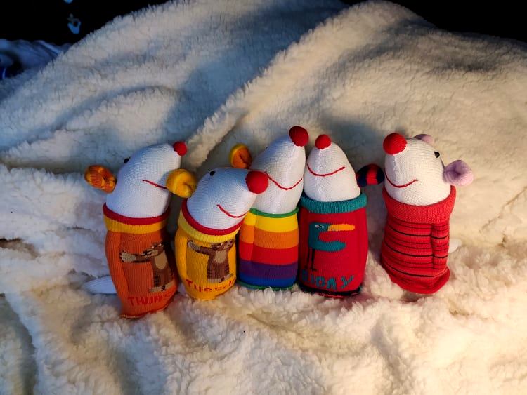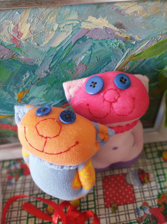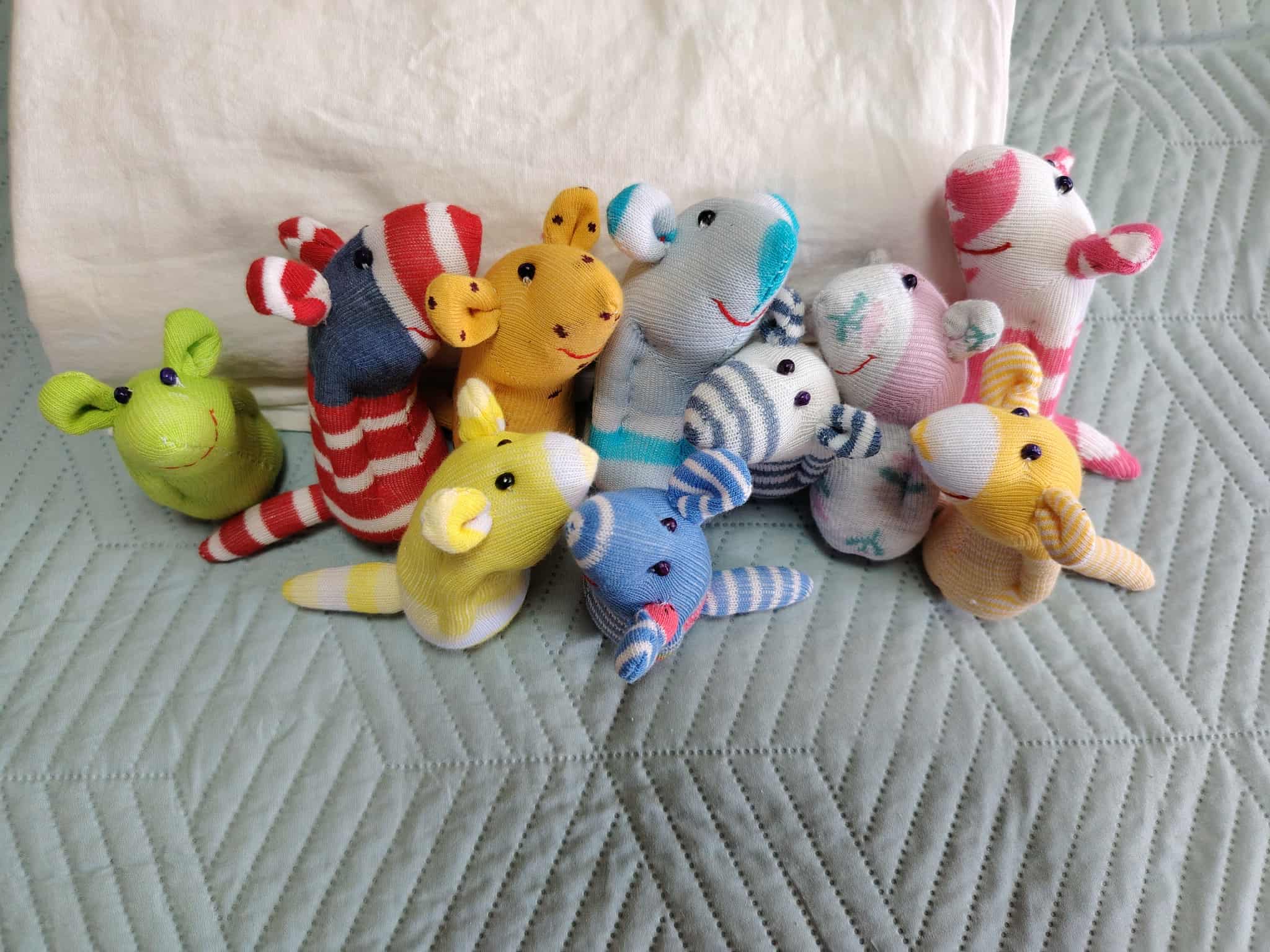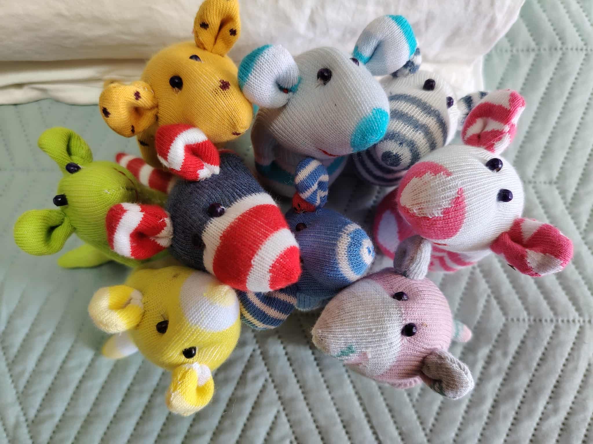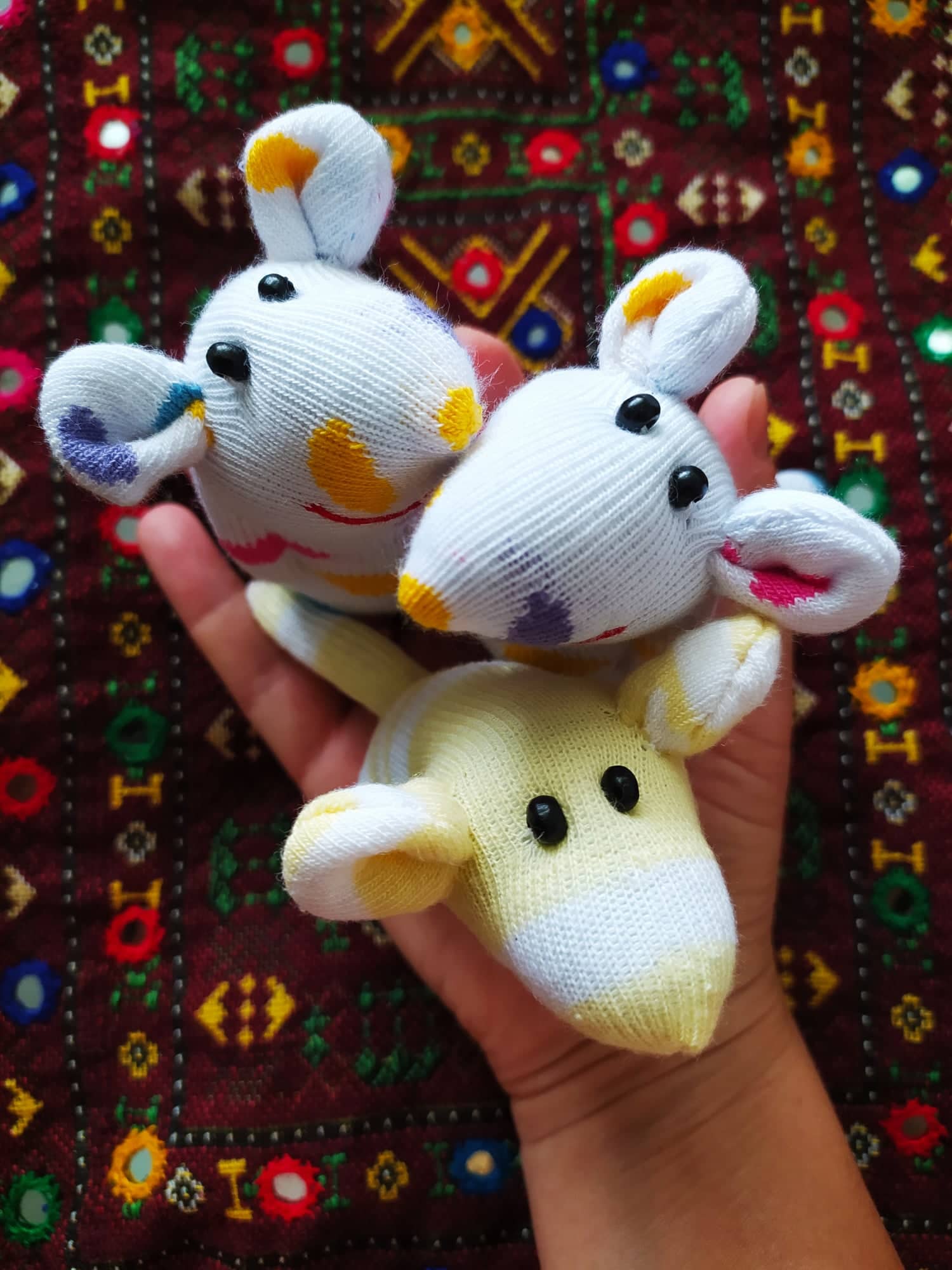 Шия само от време на време, обаче играчките се задомяват по-бързо, отколкото смогвам да ги снимам, и повечето хич не стигат до тук. Вчера и днес правих мишки (вж. по-долу).