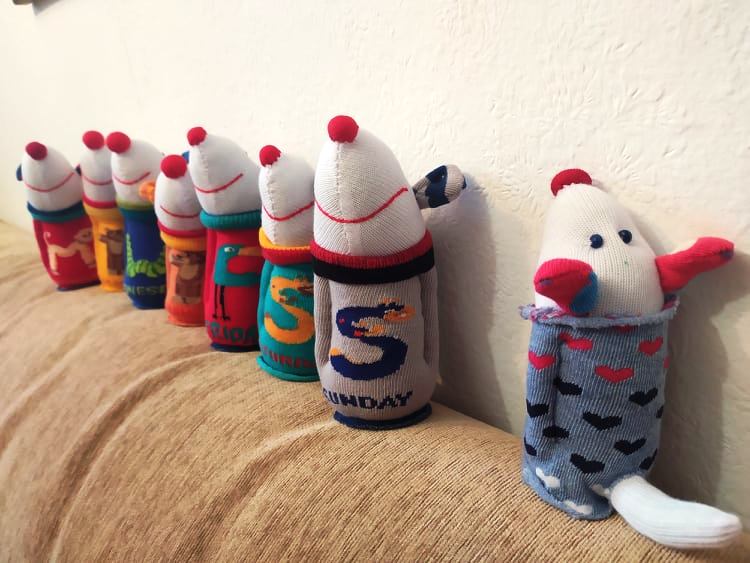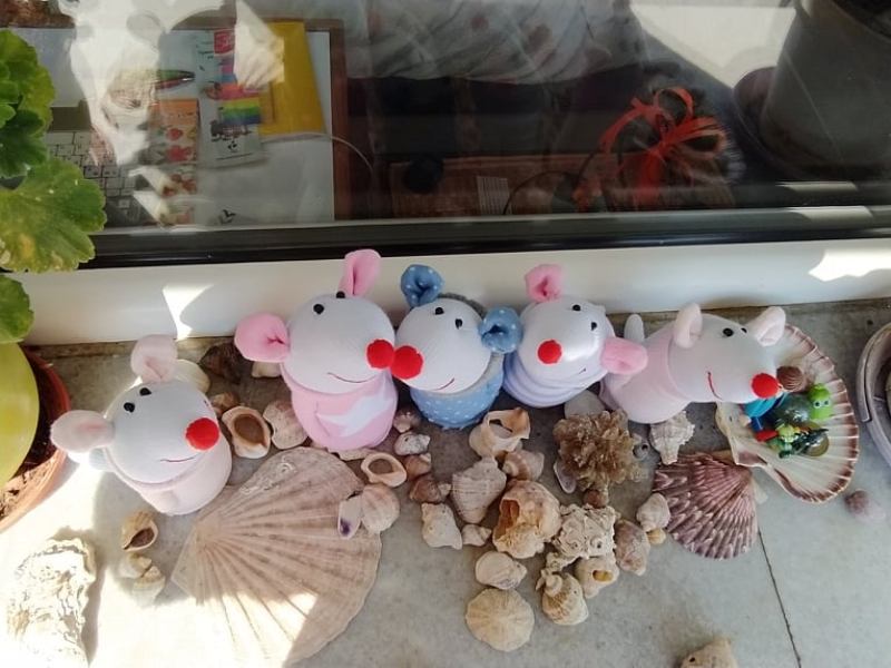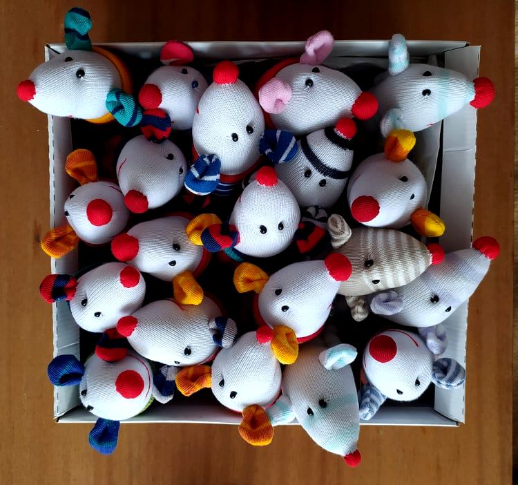 Даже може да я започна днес и да шия по малко, докато стане готова след две-три сутрини. Въпреки тази медленност (дума за „бавно“, която съдържа „мед“ и „леност“), вече ми се е събрало цяло кашонче с мишлета. Сега ми харесва да ги правя мънички. Не правя други играчки, не ми се измисля нищо, мълчи ми се.